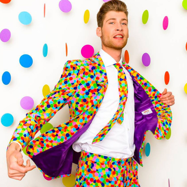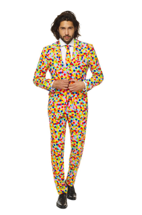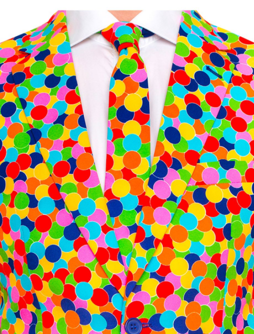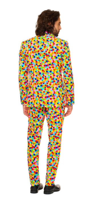Konfetti betyder fest. Det er derfor grunden til, at denne dragt kun bør bæres af rigtige festdyr. Er du det, så tag dette jakkesæt på og vær festens liv og glade dage. Bom! *konfettikanon*.