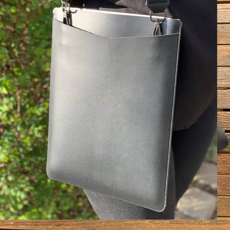 Philbert Ultratynd Sleeve med Rem til MacBook 15" – Slankt design og praktisk beskyttelse i sort