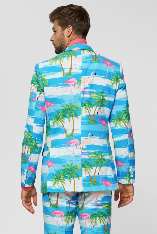 Er du helt vild med flamingoer og palmetræer? Og er du trist, at vi ingen flamingoer har i naturen, som kan glæde os med dens flotte farve. Og skal du til en begivenhed, hvor du vil skille dig ud fra mængden, men sprede fredshed og god stemning til festen - så anbefaler vi dig denne Flaminguy jakkesæt, som med garanti ville sikre dig en masse opmærksomhed.