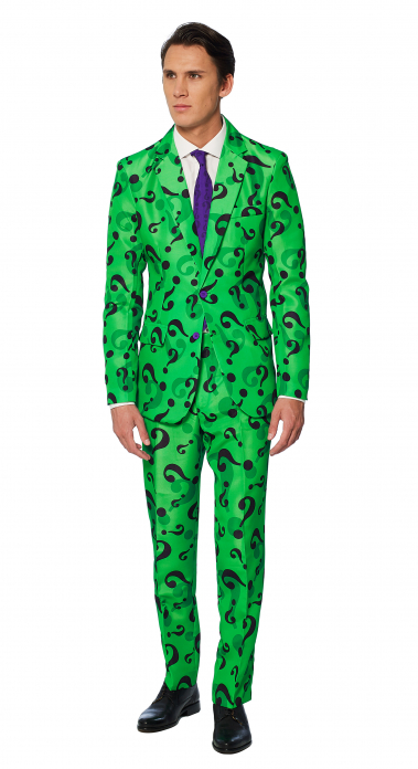 Suitmeister - Riddler er det perfekte kostume til dig, der ønsker at kombinere en skarp, elegant stil med et strejf af legesyge og mystik. Inspireret af den ikoniske karakter fra tegneseriernes verden, bringer dette kostume en unik blanding af klassisk design og finurlige detaljer, som gør dig klar til at stjæle opmærksomheden til enhver fest eller temaaften. Med sit karakteristiske mønster og velvalgte farver er Riddler-kostumet et oplagt valg for dem, der vil skille sig ud med stil og humor.