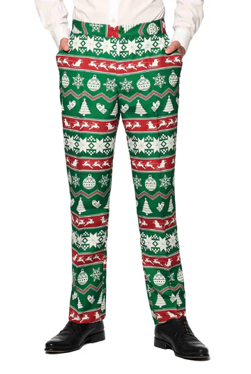 Jakkesættet fra Suitmeister er skabt med fokus på både komfort og visuel appel. Den grønne farvepalet med nordiske mønstre giver et moderne twist på det traditionelle jakkesæt, hvilket gør det ideelt til både formelle og mere afslappede julearrangementer. Kombinationen af jakke og bukser sikrer et gennemført look, der kan styles med en enkel skjorte eller en festlig trøje for ekstra personlighed. Suitmeister Christmas Green Nordic er et oplagt valg, når du ønsker at sprede julestemning med stil.