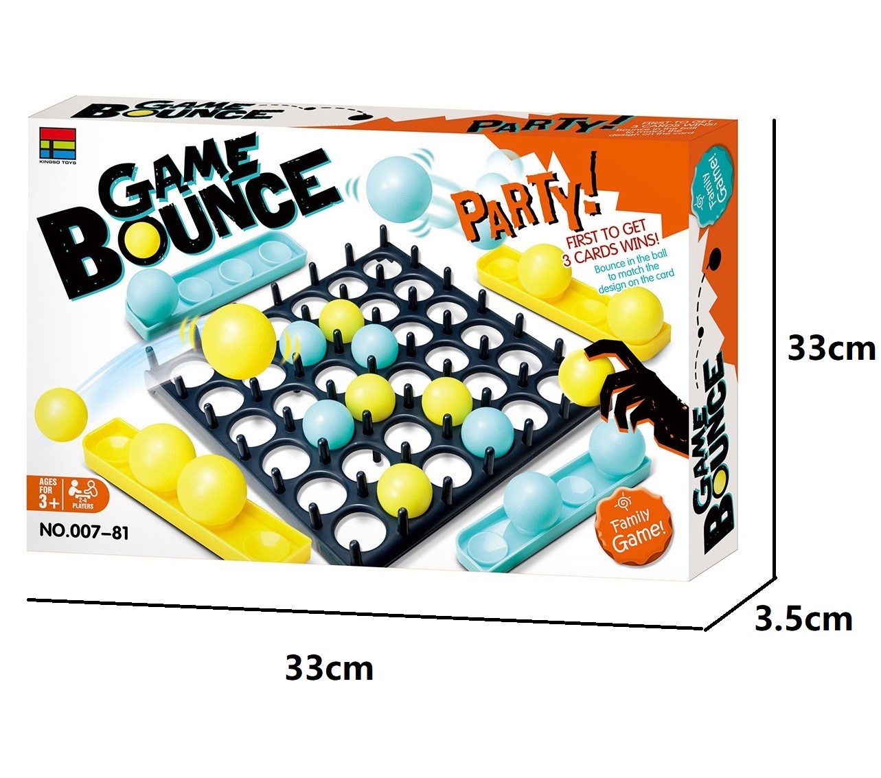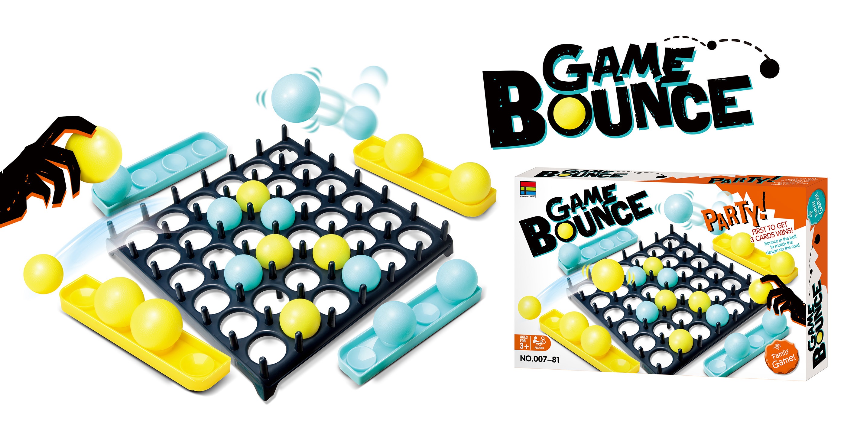 - Indeholder: 8 gule bolde, 8 blå bolde, 4 boldbaser, 9 kort, 1 spildisk