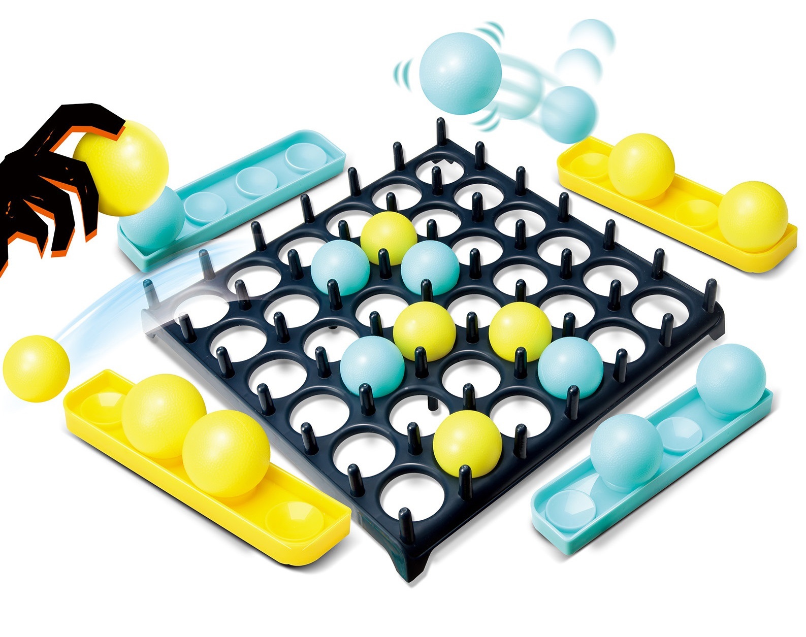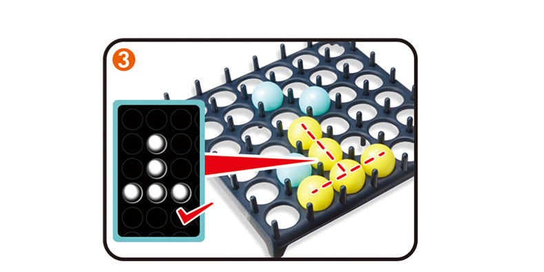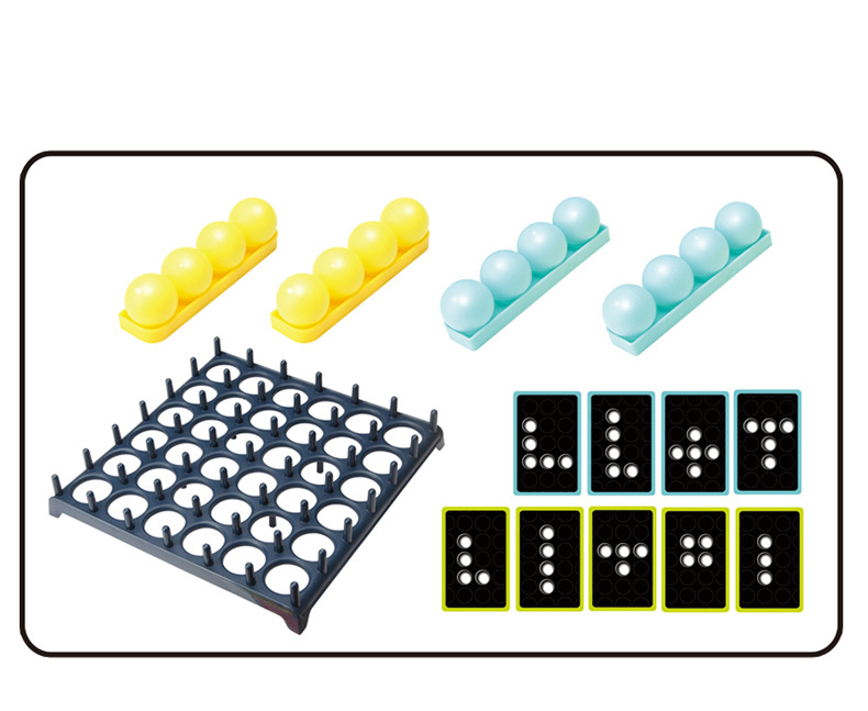 Placér gitteret på et bord og vend et udfordringskort. Kast herefter boldene ind i gitteret og forsøg at skabe den form, der vises på kortet, hurtigst muligt.