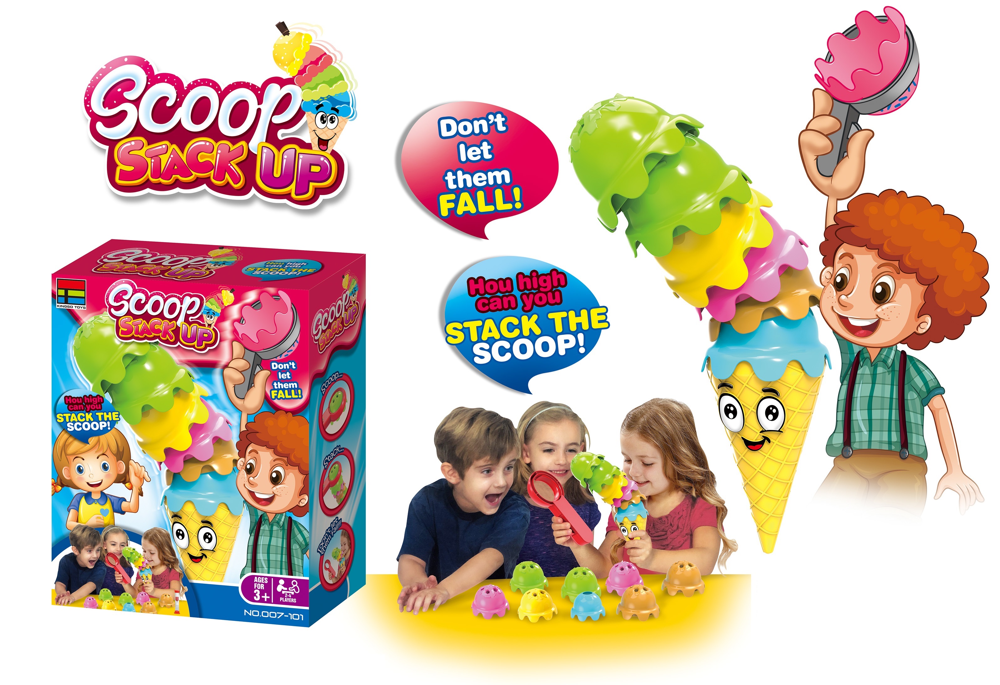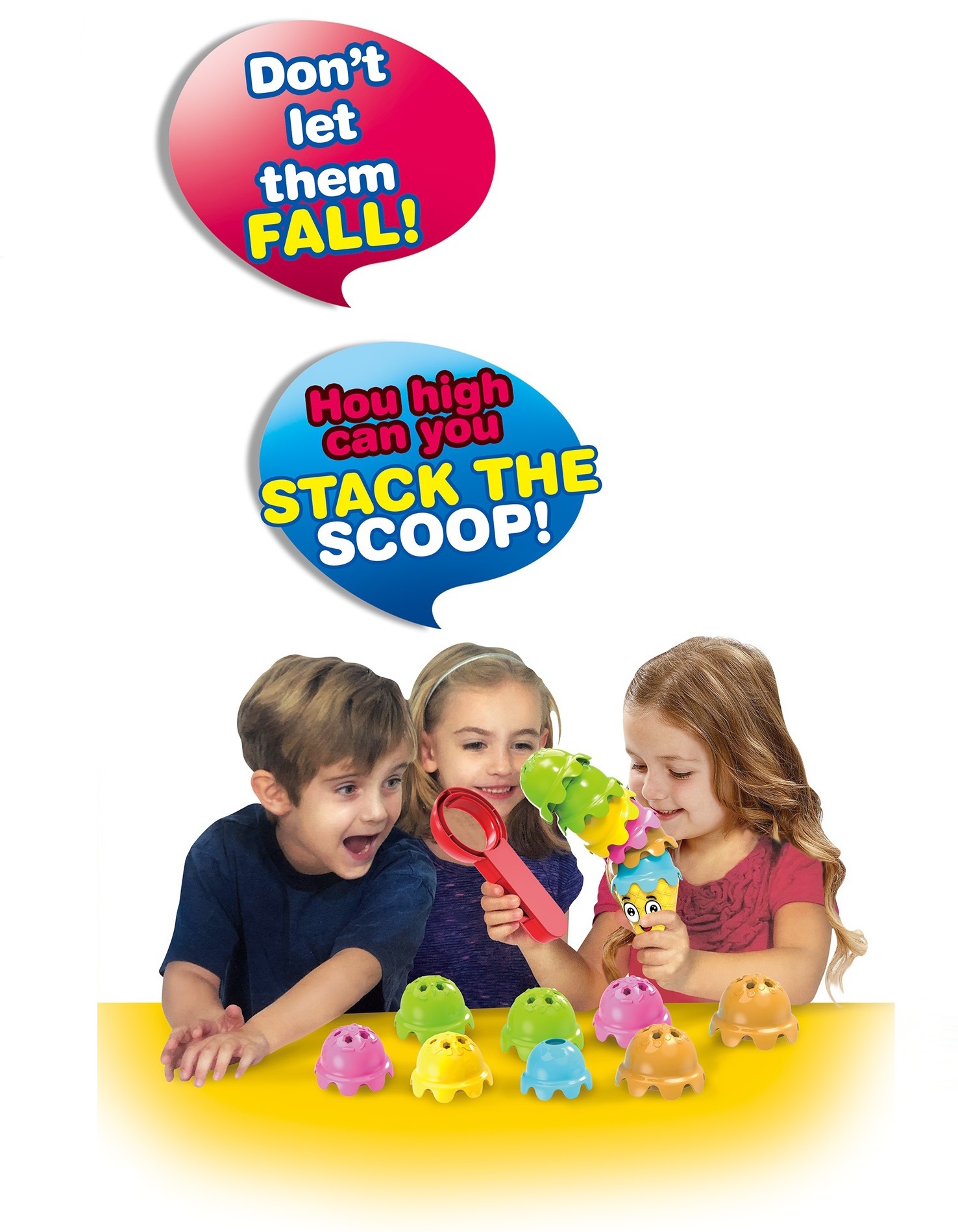 Scoop Stack Up er et sjovt og underholdende spil for 2-4 spillere, hvor børn konkurrerer om at stable iskugler på en isvaffel uden at vælte. Spillet er perfekt til både familiehygge og børnefødselsdage, samtidig med at det styrker barnets koncentration, finmotorik og balance.