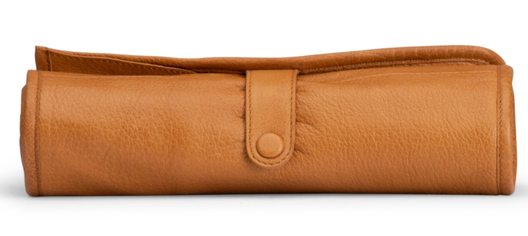 Med Muud Bea etuiet får du ikke bare en opbevaringsløsning, men også et smukt accessory, der passer til enhver strikkeentusiast. Den varme whiskyfarve fremhæver læderets naturlige struktur og giver et rustikt men moderne look. Etuiet rulles nemt sammen og lukkes sikkert, så dine strikkepinde holdes samlet og beskyttet under transport eller opbevaring. Det kompakte design gør det let at have med i tasken eller opbevare i hjemmet uden at fylde unødigt.