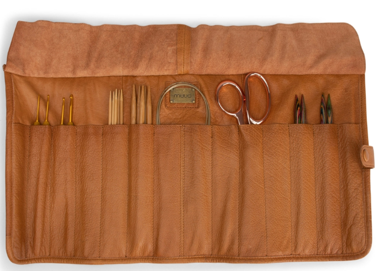 Muud Bea Etui til Strikkepinde - Læder, Whisky – stilfuld opbevaring til dine strikkeprojekter