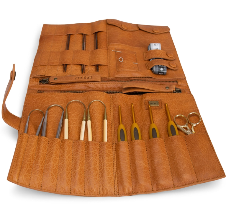 Muud Billie Multifunktion Strikkeetui i Læder – Whisky