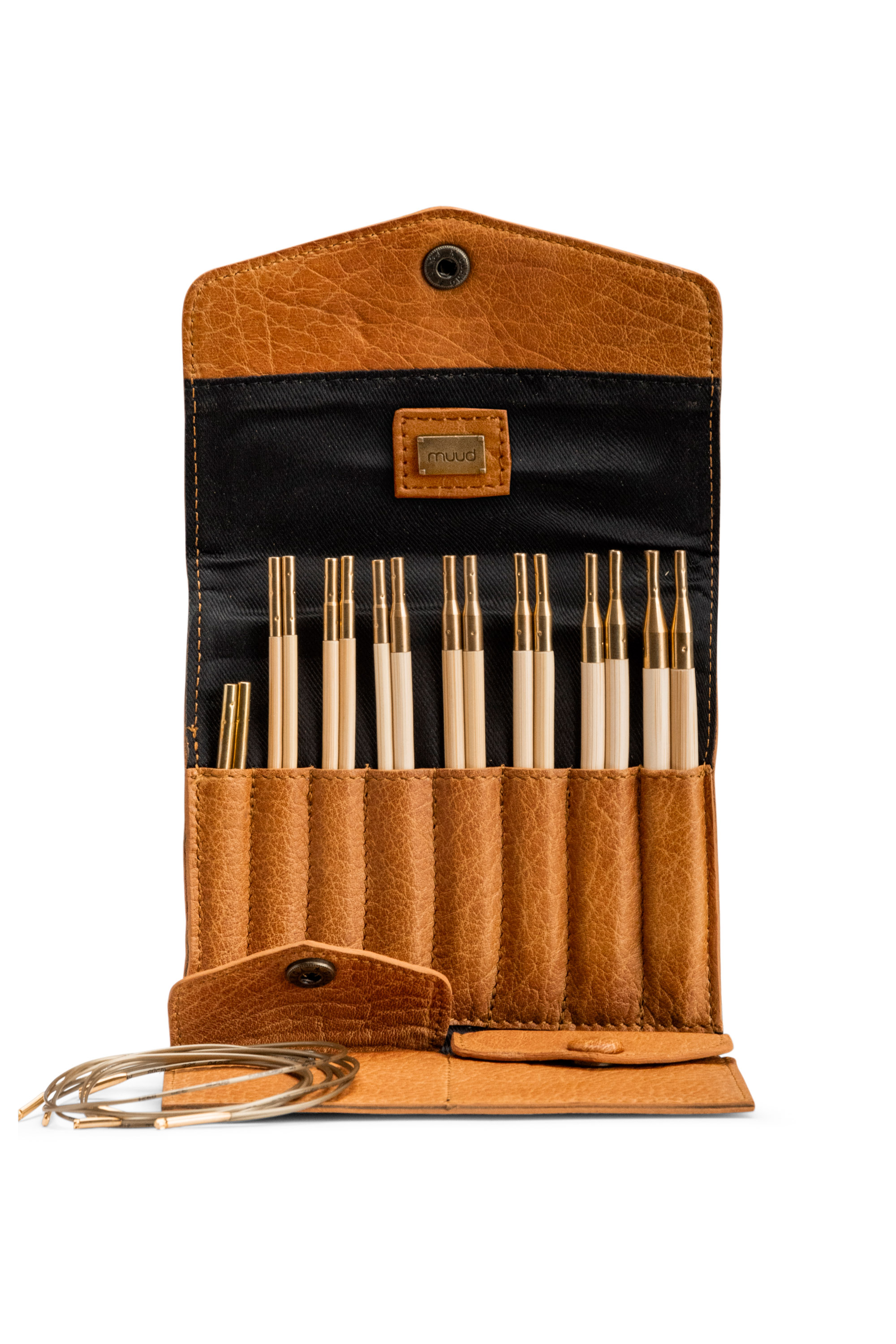 Muud Civ Etui til Strikkepinde - Læder, Whisky – elegant opbevaring til dine strikkeprojekter