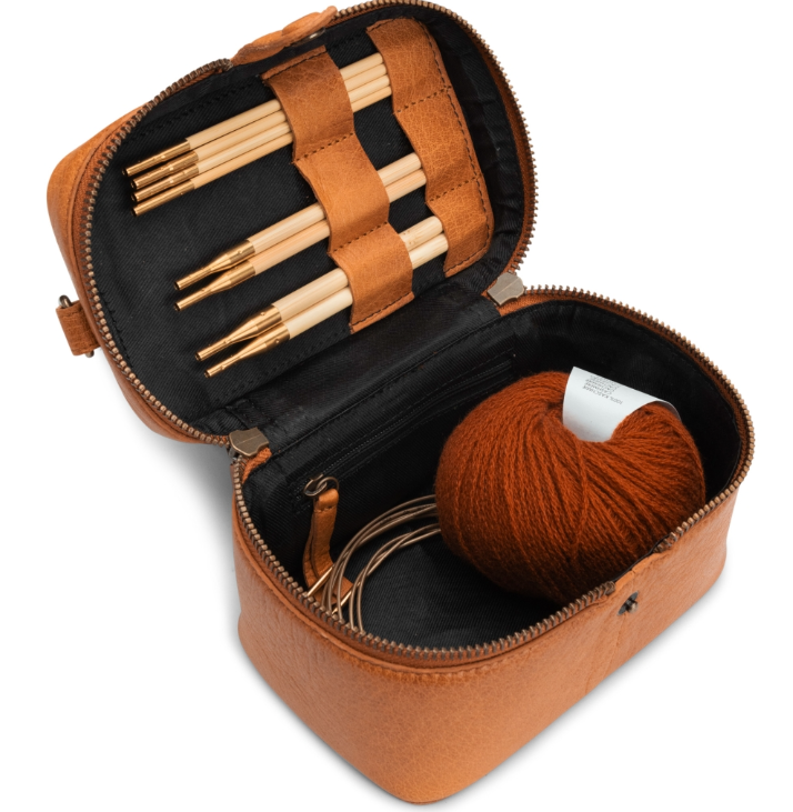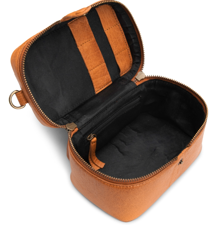 Muud Lexi Mini Taske/Toilettaske i Læder – Whiskyfarvet elegance og praktisk design
