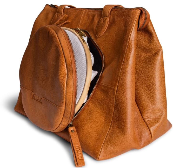 Med sit rummelige indre giver Muud Fro Shopper plads til både garn, nåle, mønstre og andre nødvendigheder til broderi. Den praktiske størrelse gør den nem at have med på farten, uanset om du skal til broderiklubben eller bare ønsker at holde orden derhjemme. Den smukke whisky-farve og det naturlige lædermateriale giver tasken et tidløst og eksklusivt udtryk, som passer til enhver stil.