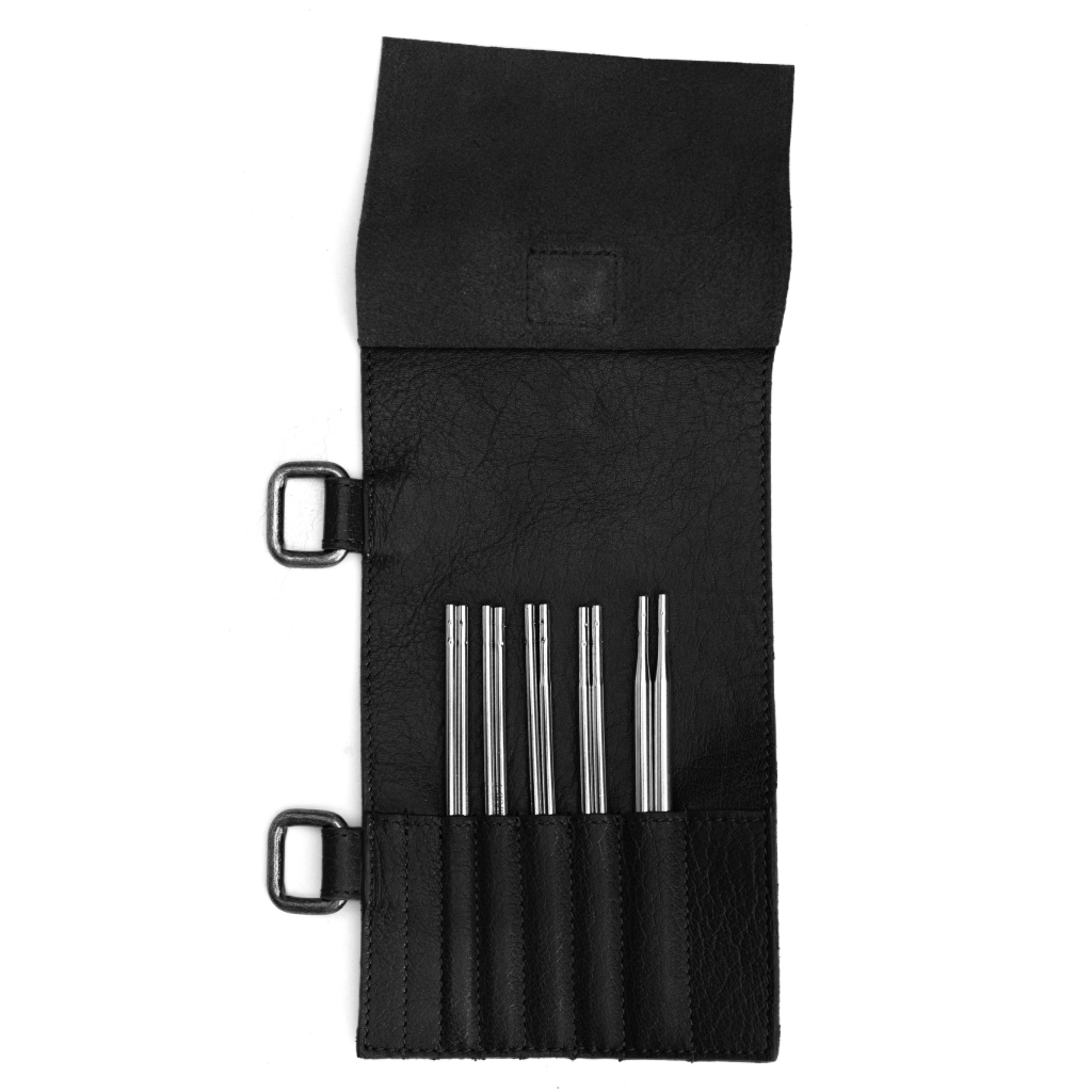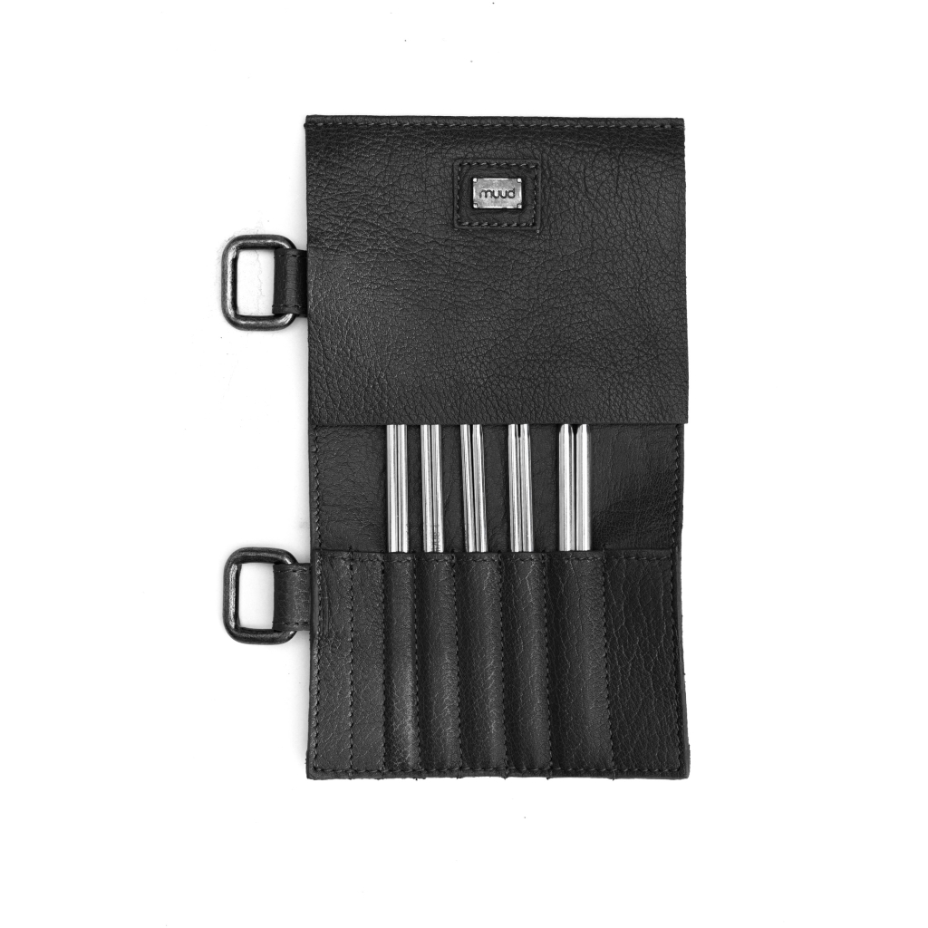 Muud Carita K er et håndlavet tilbehørsetui i ægte læder, designet til at give dig både funktionalitet og elegance. Etuiet er perfekt til opbevaring af strikkepinde, hæklenåle eller andre småting, og det passer desuden til Muud Carita etuiet, så du får en komplet og praktisk løsning til dit håndarbejde.