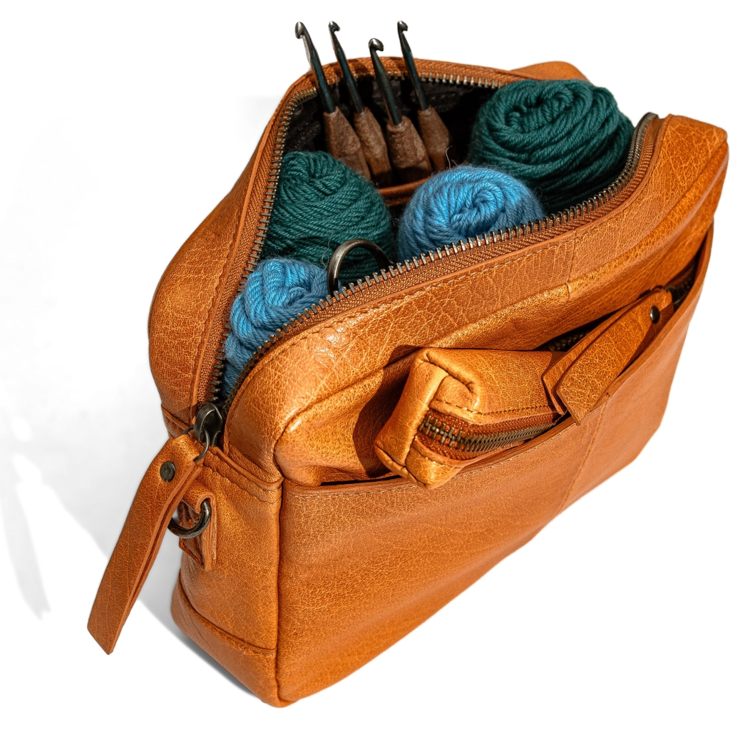 Muud Sandnext er en eksklusiv og håndlavet taske i ægte læder, der kombinerer funktionalitet med et elegant design. Tasken er ideel til opbevaring af hæklenåle, strikketilbehør og andre småting, og med skulderremmen får du fuld bevægelsesfrihed, når du er på farten.