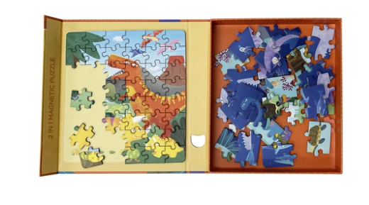 - Indhold: Magnetisk puslespil med dinosaurtema og magnettavle