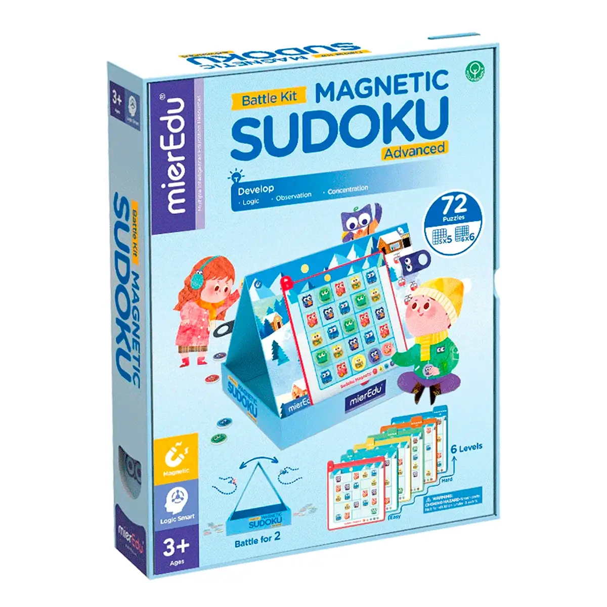 Gør sudoku sjovt og lærerigt for børn med mierEdu Magnetisk sudoku - Duel sæt. Her kan én eller to spillere dyste om at løse sudoku-opgaver hurtigst muligt og styrke logisk tænkning, koncentration og problemløsning gennem leg.