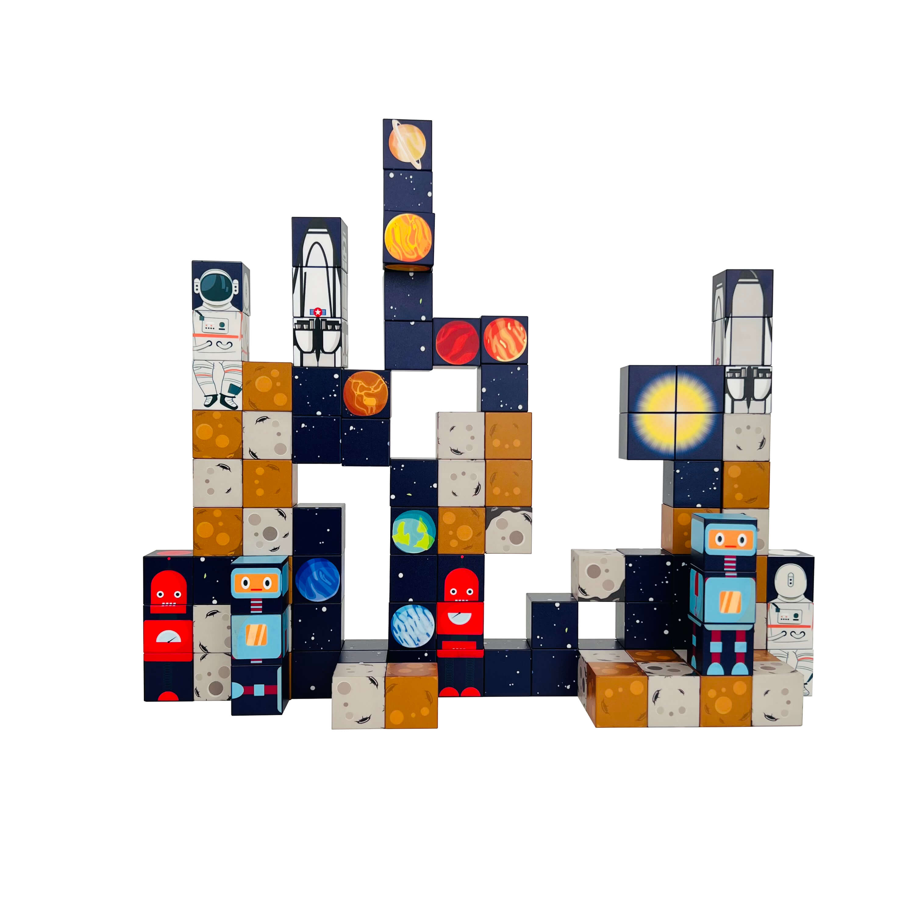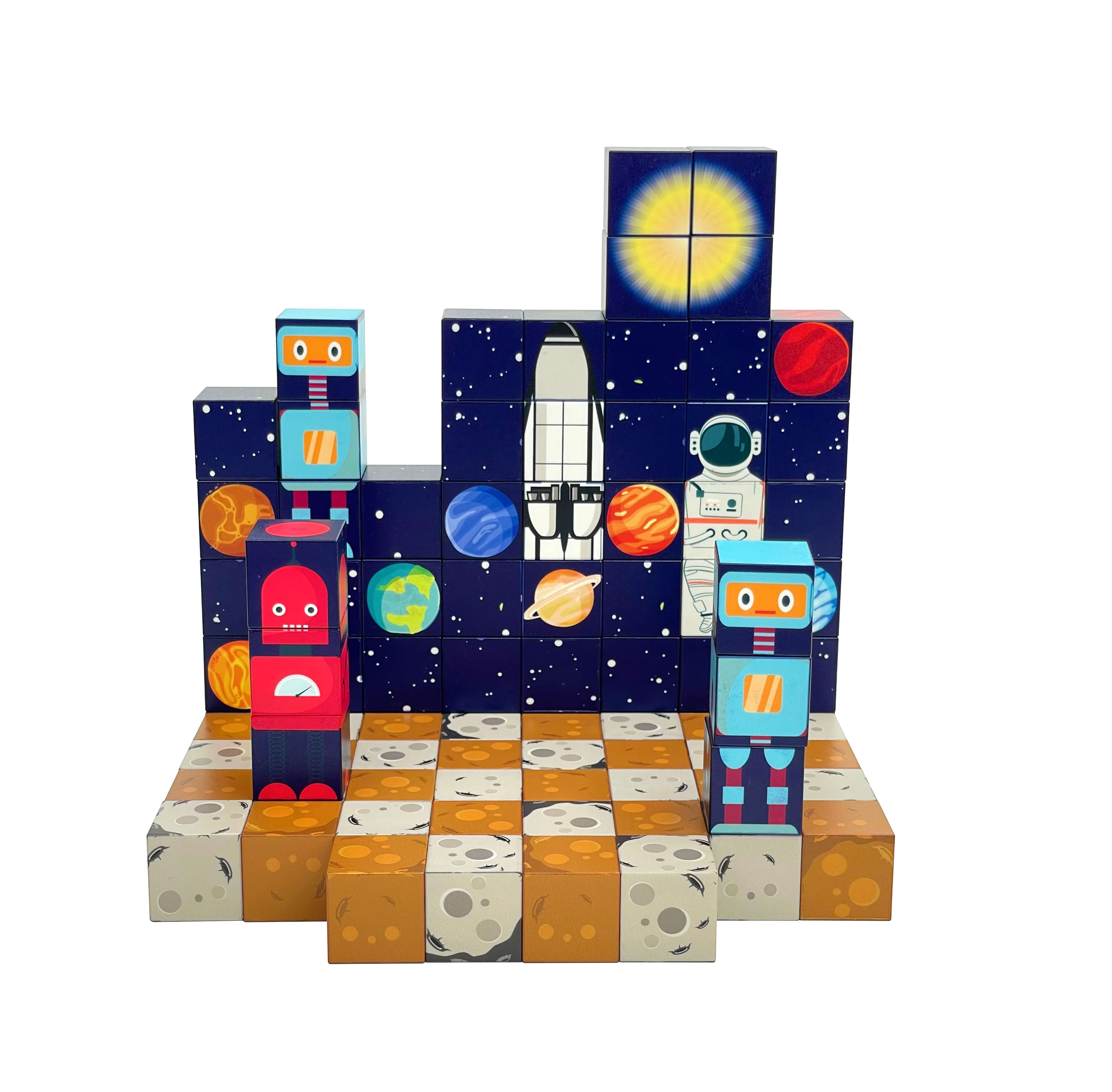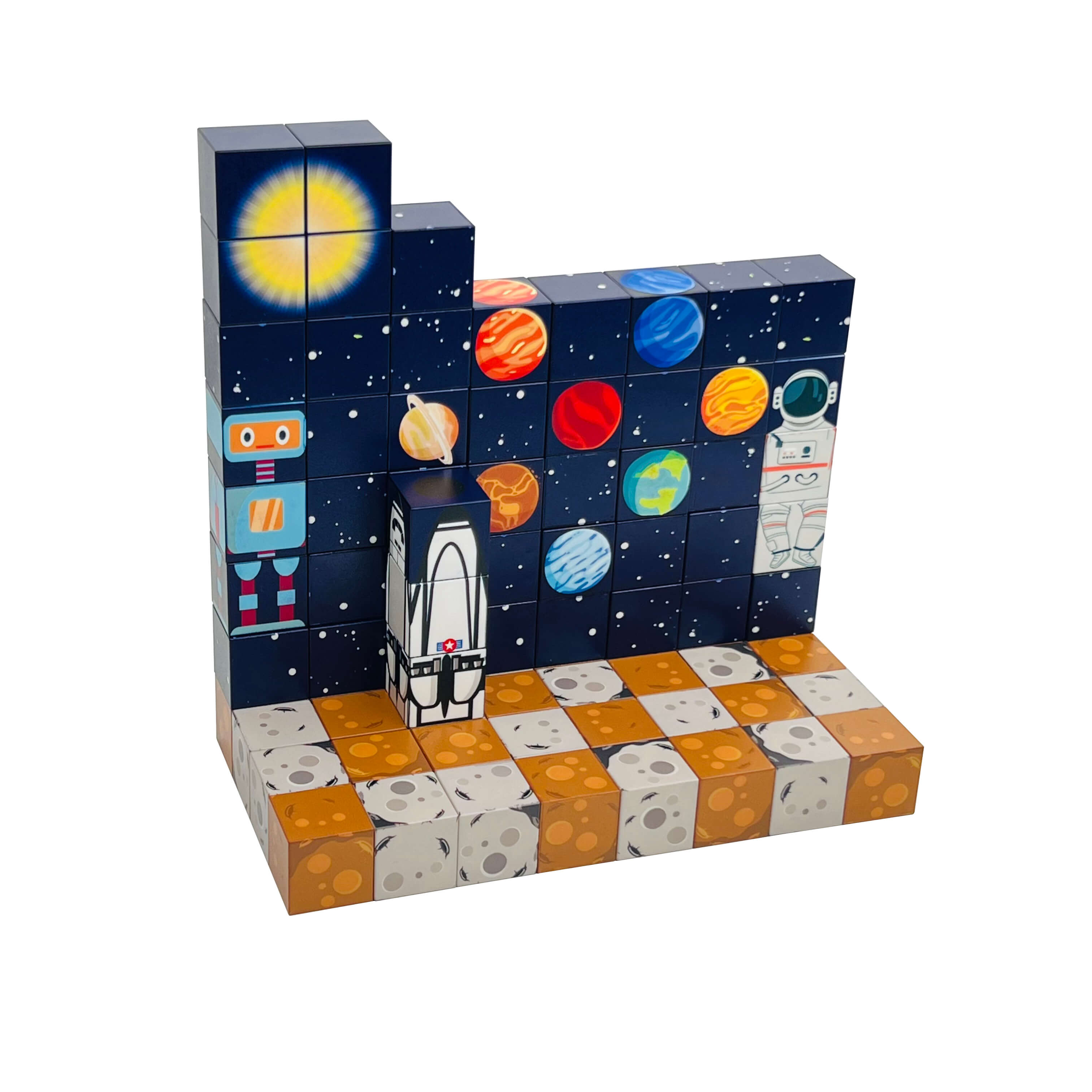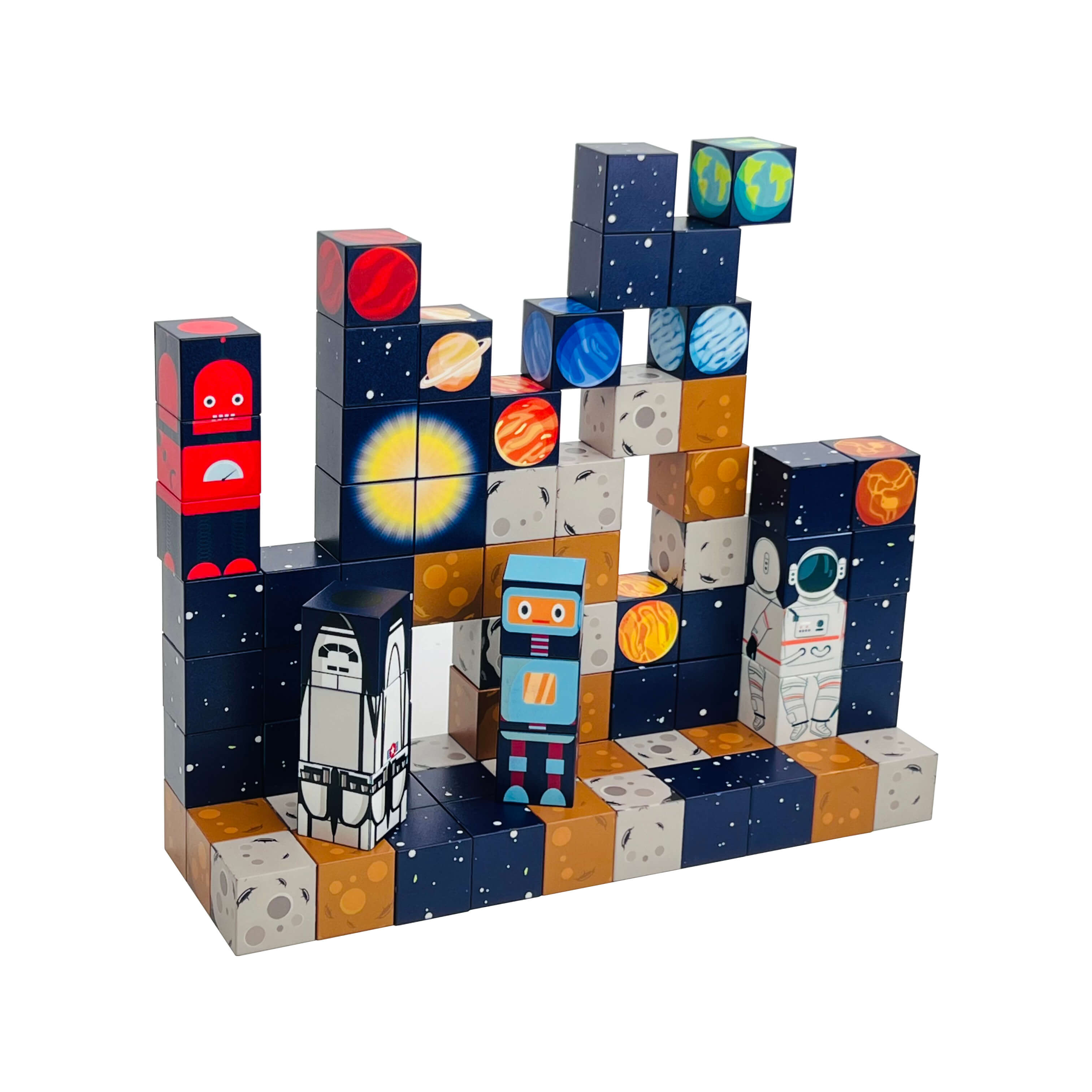 Tag på eventyr i det ydre rum med MagCubes – et kreativt og lærerigt magnetisk byggesæt med 100 dele. Klodserne er designet med farver og mønstre inspireret af stjerner, planeter, rumstationer og galaktiske landskaber, så børn kan bygge deres helt eget univers med rumskibe, månebiler, aliens og raketbaser.