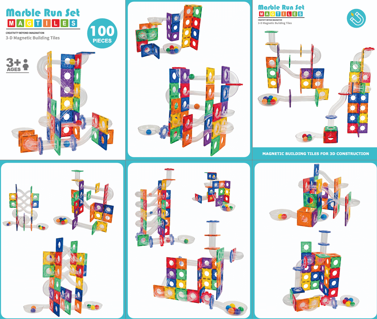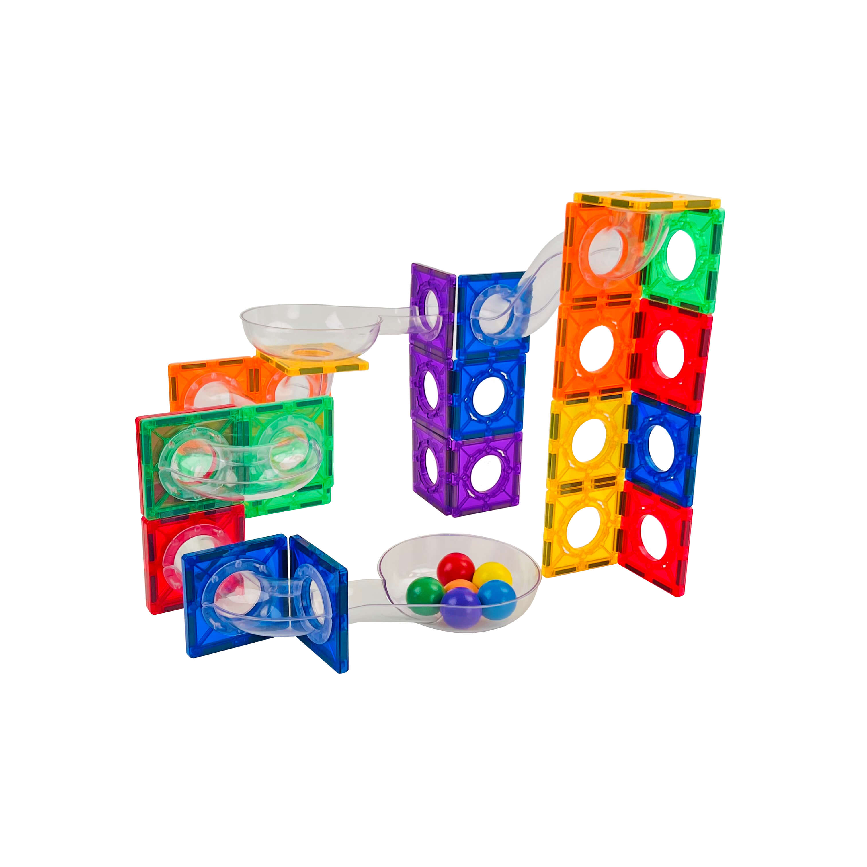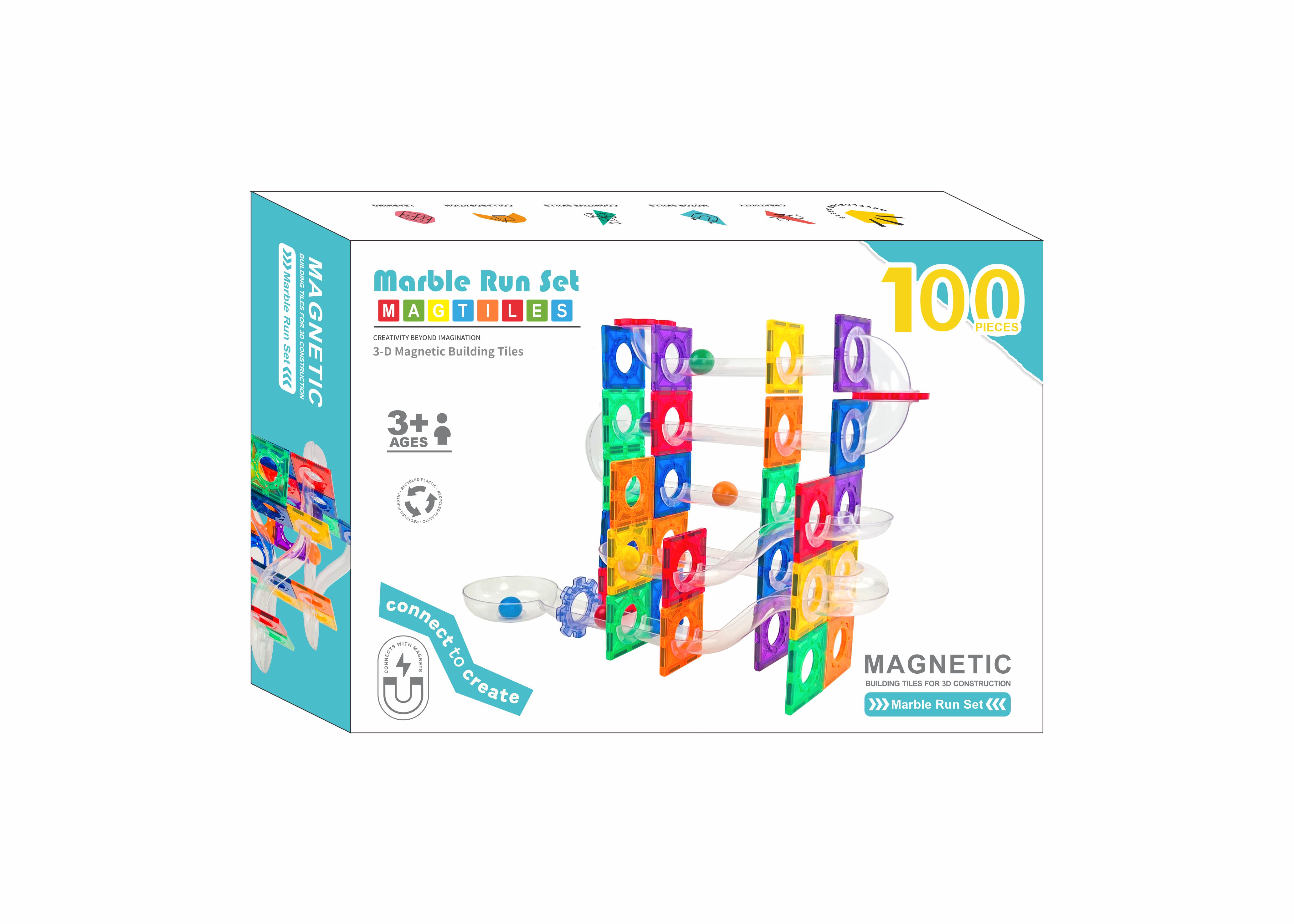 Byg, leg og eksperimentér med Magnetic Tiles Kuglebane med 100 farverige dele