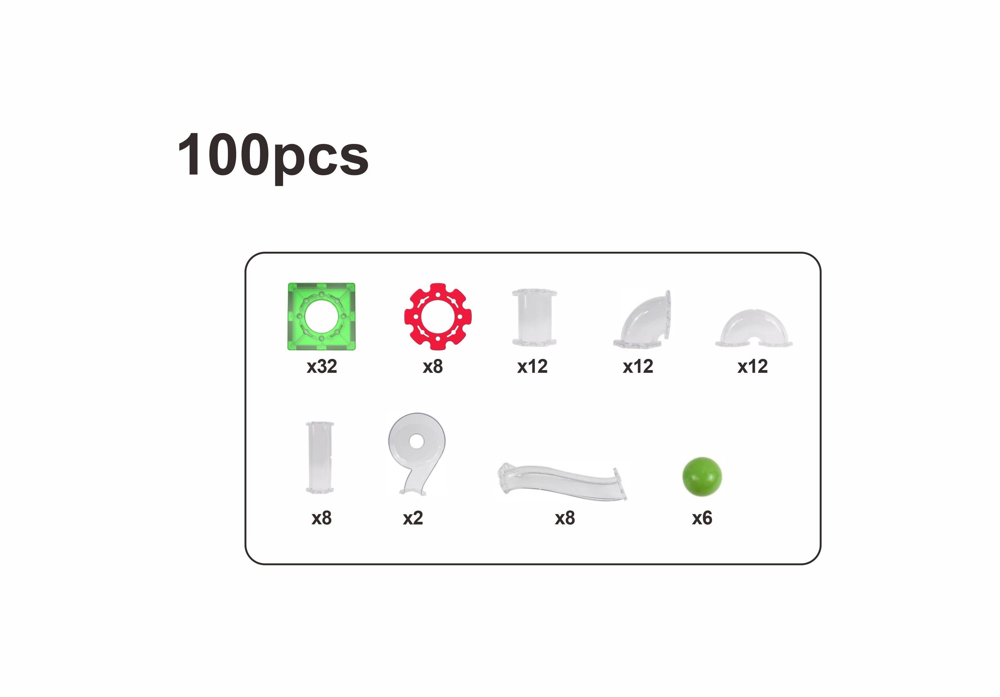 - Indhold: 100 dele – magnetiske byggeplader, kuglebane-elementer og kugler