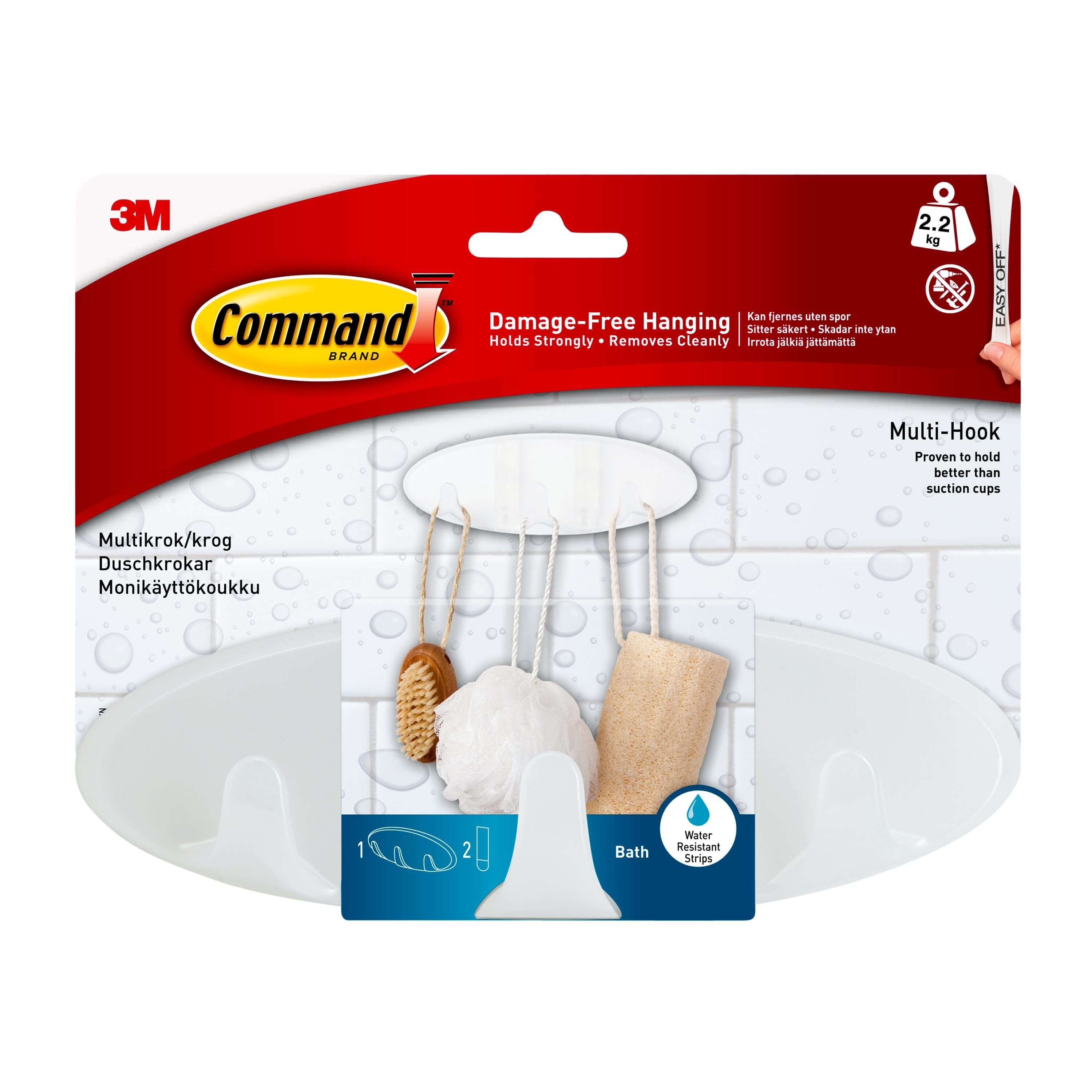 3M Command multikrog til vådrum er en smart og fleksibel løsning til badeværelset. Krogen monteres med de stærke, vandafvisende Command klæbestrips, som holder sikkert selv i fugtige omgivelser. Når den fjernes, sker det helt uden at efterlade huller, mærker eller klæberester. Med sit praktiske design giver multikrogen ekstra ophængsplads, hvilket gør den ideel til badeartikler og tilbehør.