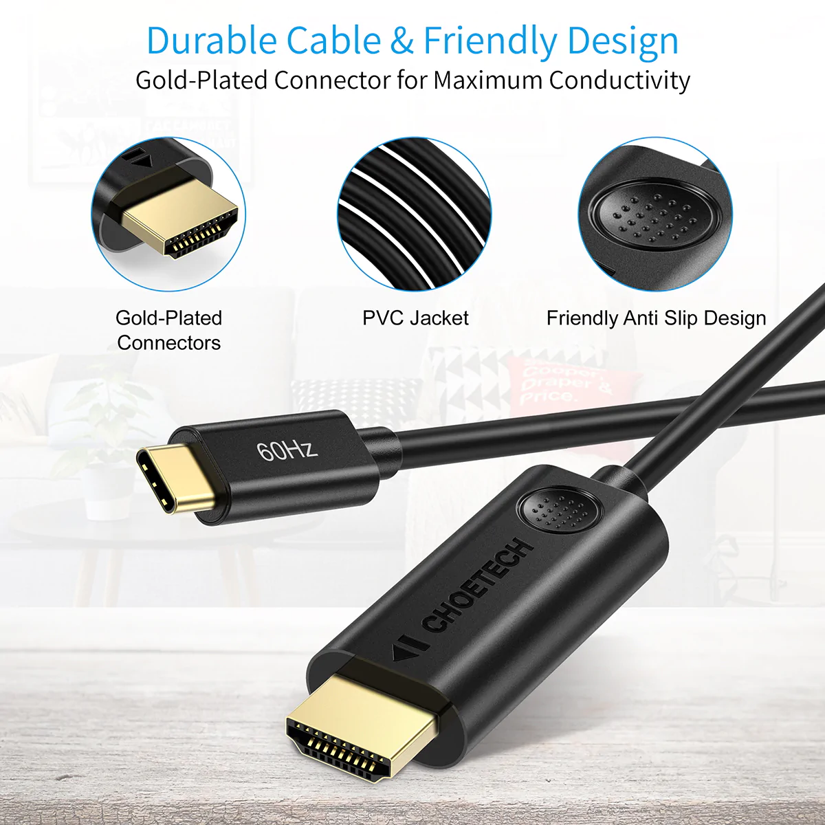 Vælg Choetech USB-C til HDMI kabel for en problemfri og højopløst forbindelse mellem dine moderne enheder og større skærme.