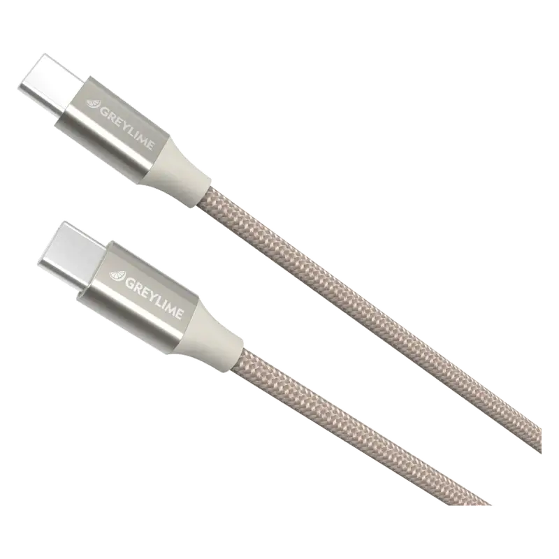GreyLime Braided USB-C-USB-C Kabel 60W 1 m - Beige – robust og hurtig opladning