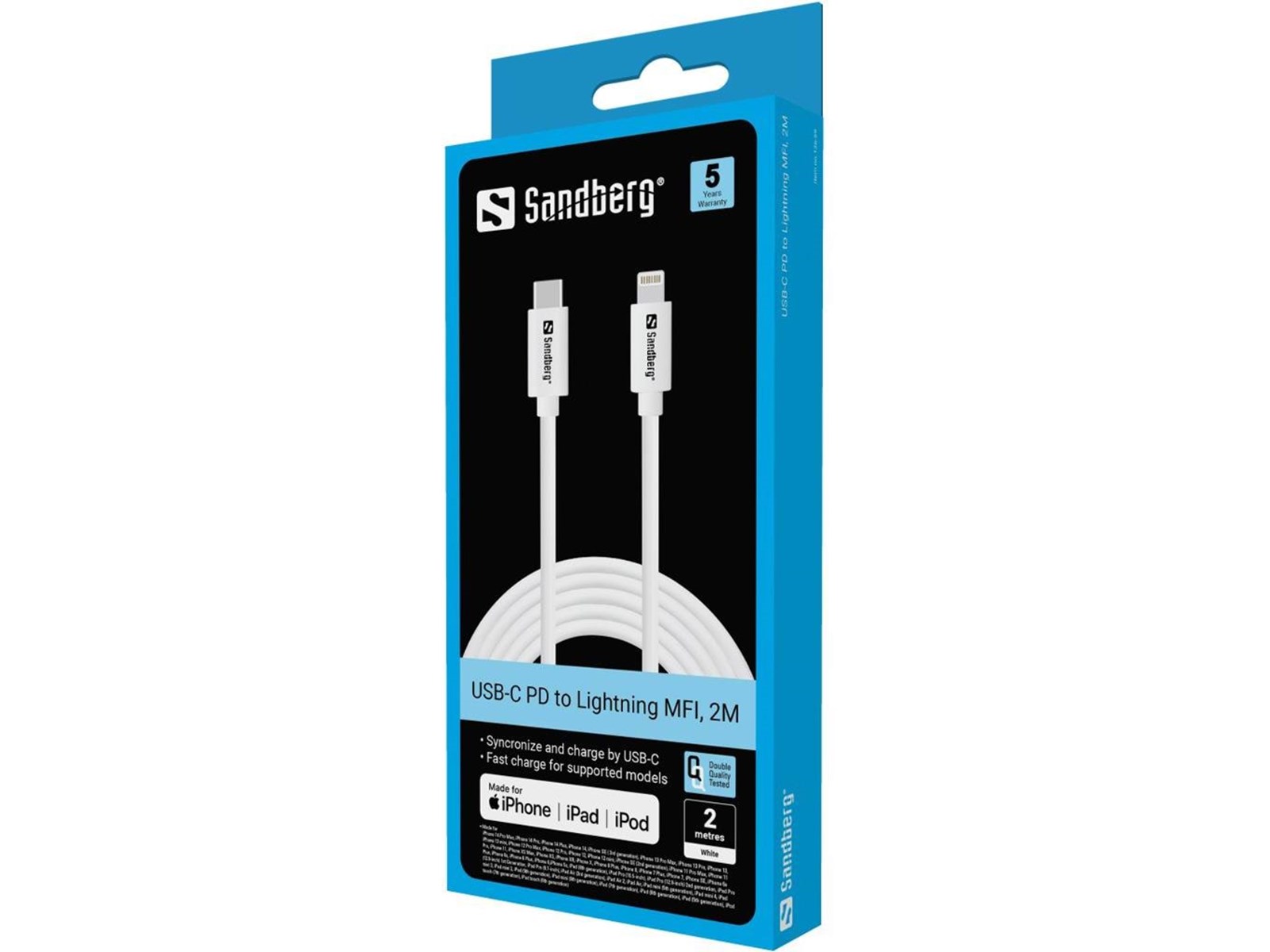 Sandberg USB-C PD to Lightning MFI, 2M – hurtig og pålidelig opladning