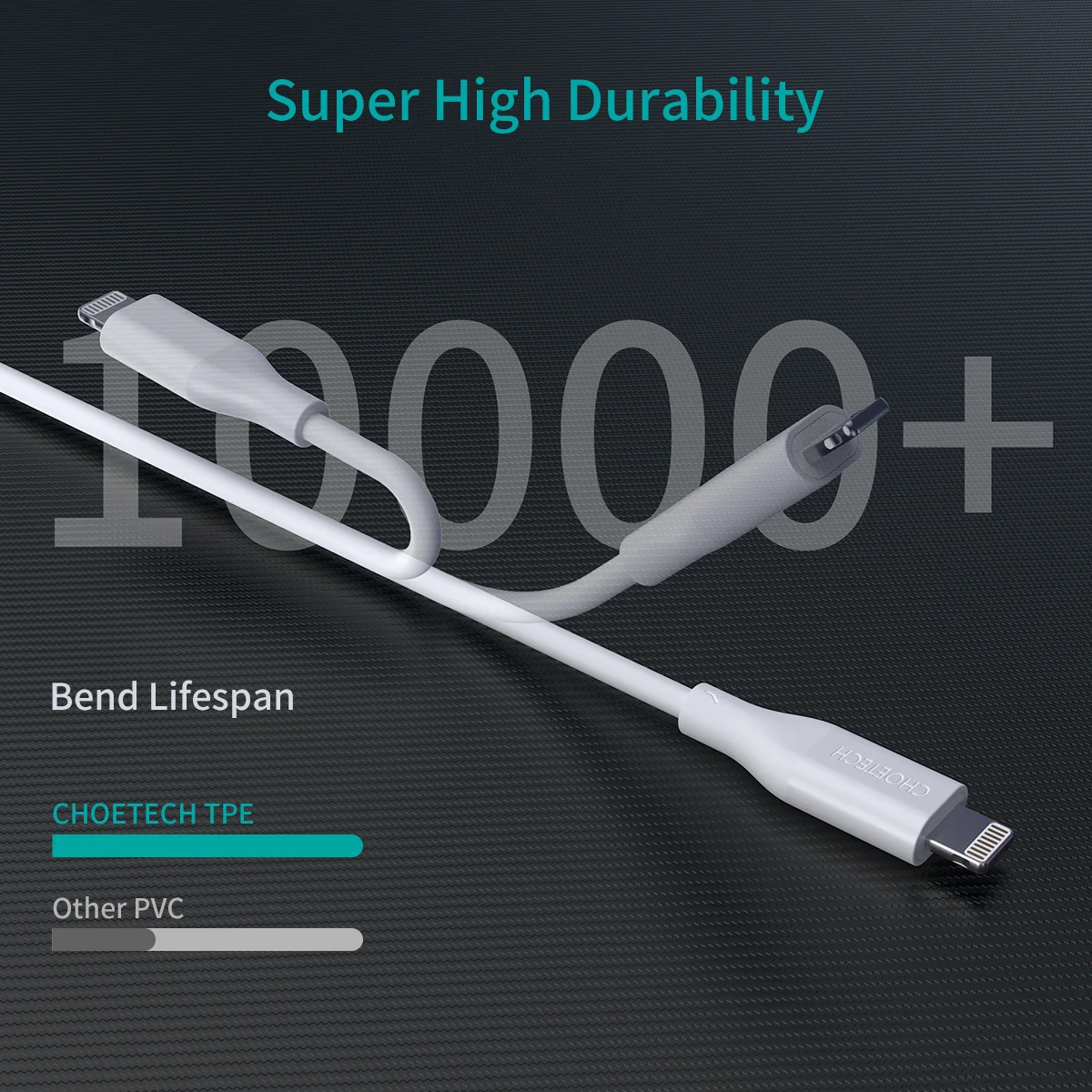 Køb Choetech 1,2 m USB-C til Lightning kabel i hvid på Pixojet.dk og få et slidstærkt kabel, der kombinerer hastighed, kvalitet og design.