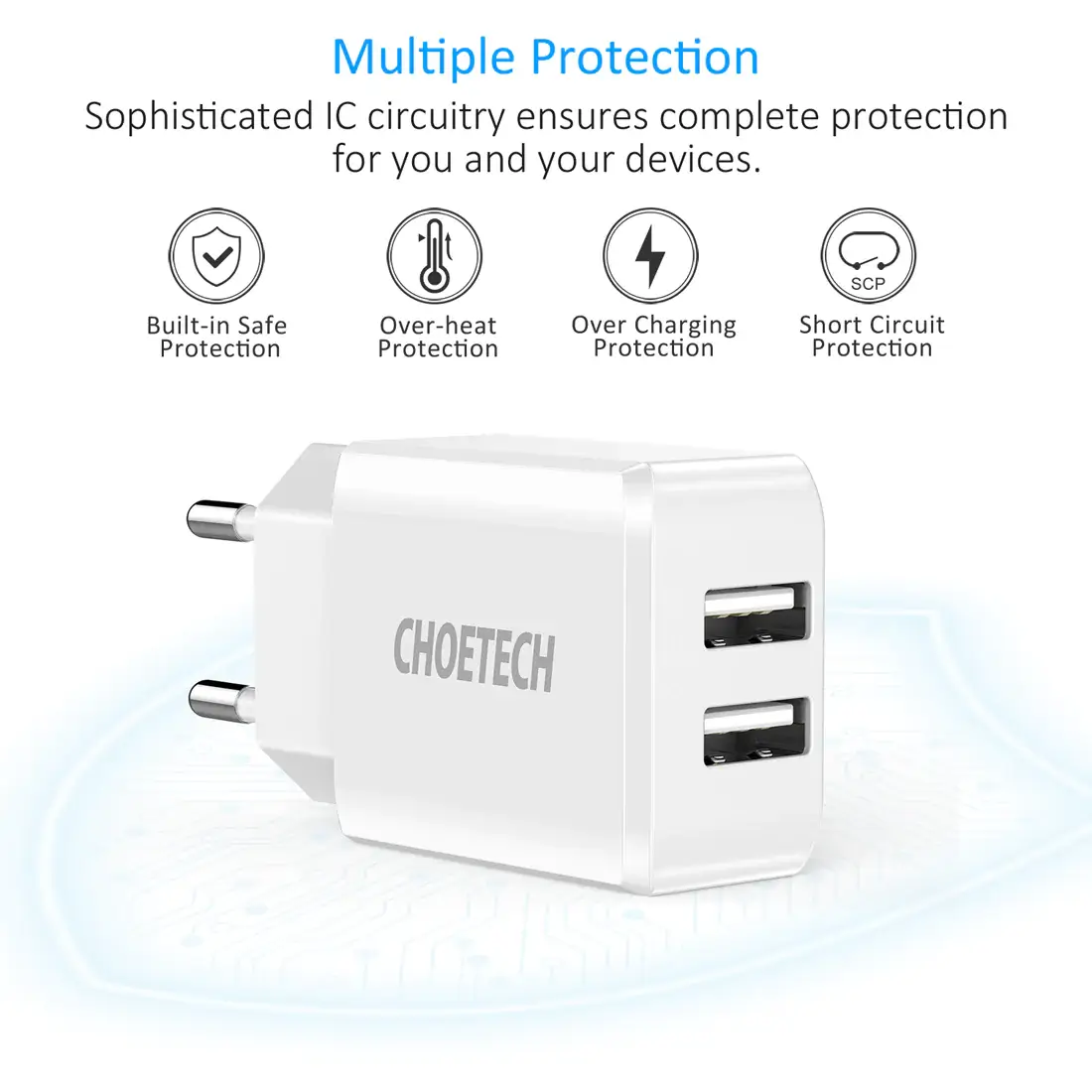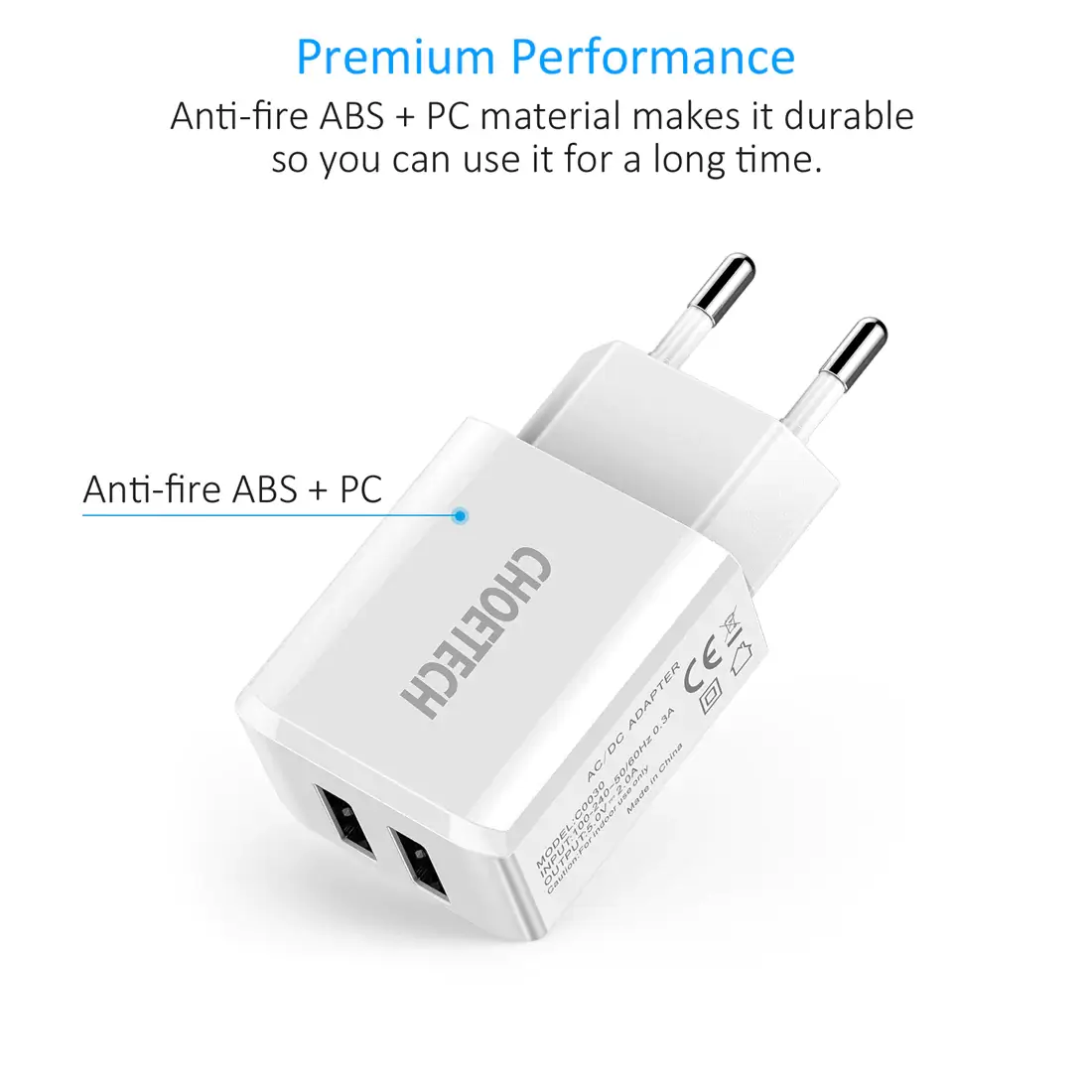 Specifikationer for Choetech 2-Port Vægoplader 10W