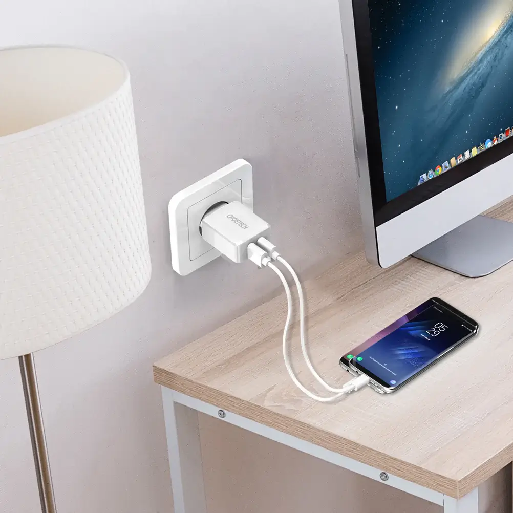 Choetech 2-Port Vægoplader 10W - Hvid – effektiv opladning til flere enheder