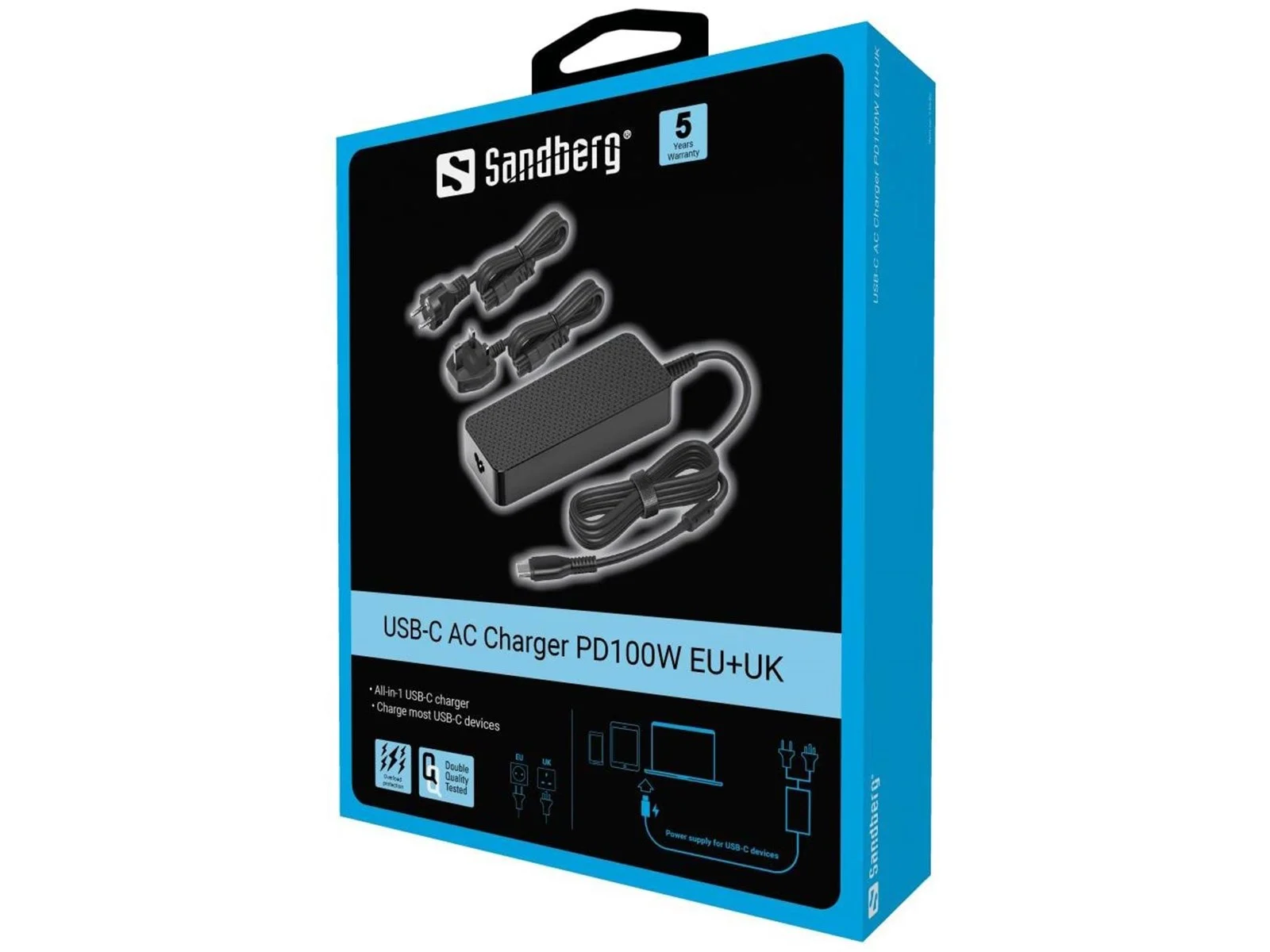 Vælg Sandberg USB-C AC Oplader PD100W EU+UK for en pålidelig, kraftfuld og alsidig opladningsløsning, der følger med dig overalt.