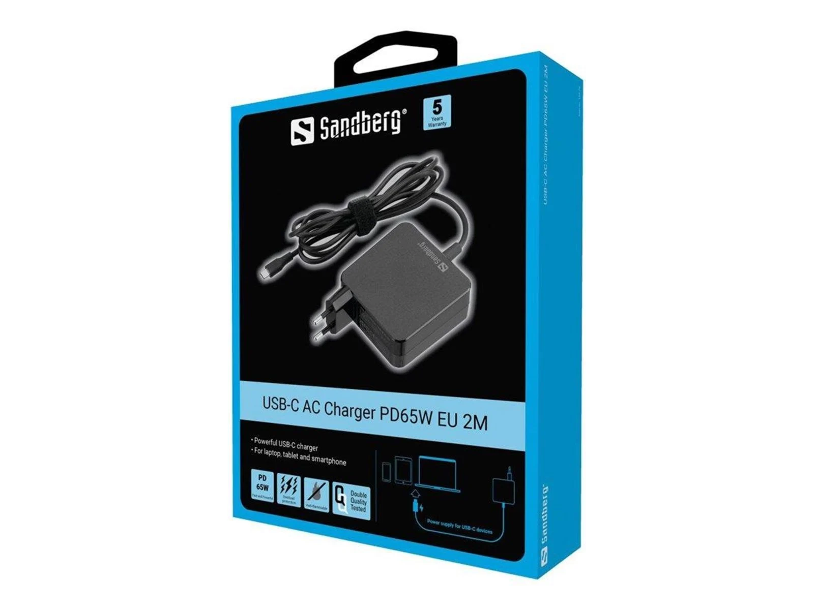 Vælg Sandberg USB-C AC Oplader PD65W EU 2M for en effektiv og sikker opladningsoplevelse, der holder dine enheder kørende uden besvær.