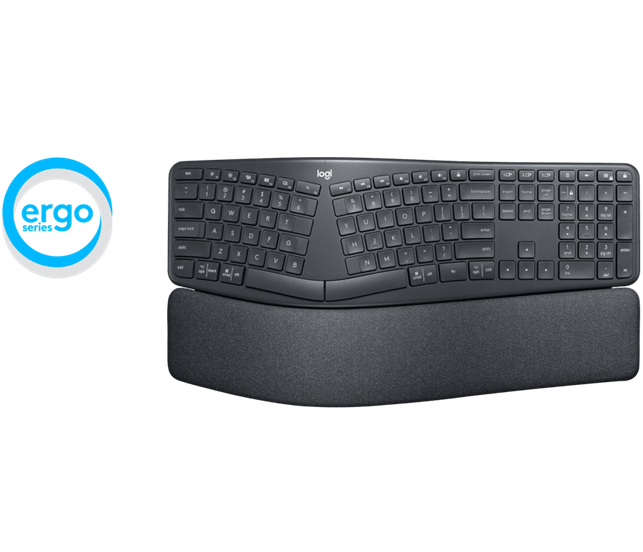 Logitech K860 ERGO Tastatur kombinerer ergonomi og funktionalitet, så du kan arbejde mere effektivt og komfortabelt. Giv dine hænder og arme den støtte, de fortjener, og opgrader dit skrivebord med dette innovative tastatur.
