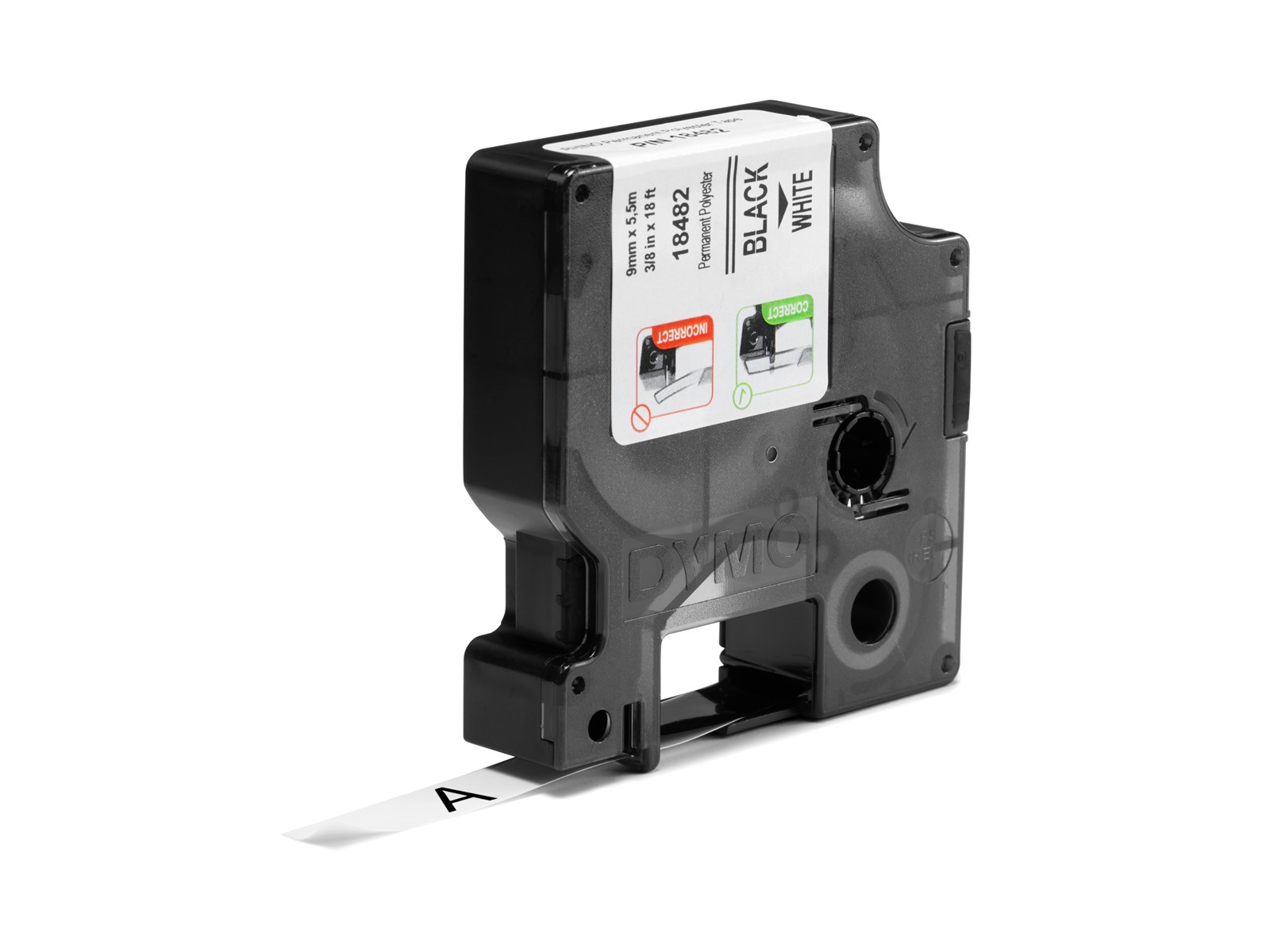 DYMO Tape Rhino 9 mm (5,5 m), Permanent Polyester - sort/hvid