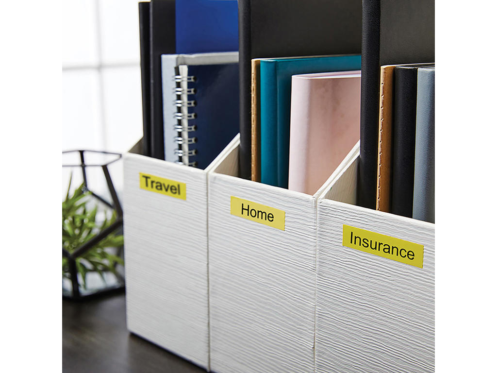 DYMO Tape D1 i modellen 45808 er en 19 mm bred og 7 meter lang mærketape, der kombinerer stærk holdbarhed med tydelig læsbarhed. Med sin sorte tekst på gul baggrund sikrer den høj kontrast, som gør teksten let at aflæse, selv på afstand eller i svagt lys. Denne tape er ideel til både kontor, lager, værksted og hjemmebrug, hvor der er behov for effektiv og overskuelig mærkning af mapper, kasser, kabler og meget mere.