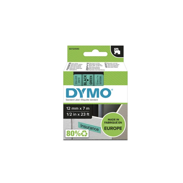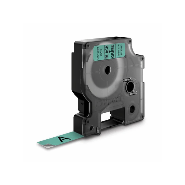 DYMO tape D1 (45019), 12 mm x 7 m – sort/grøn til præcis mærkning
