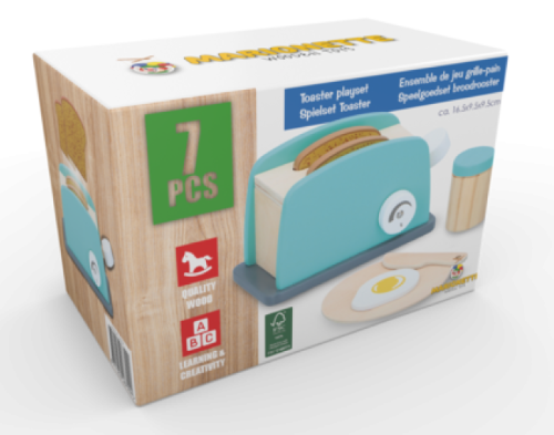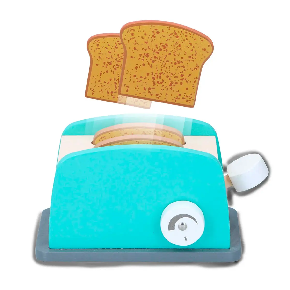 Dette sæt indeholder alt, hvad barnet behøver for at lege med brødristeren og tilbehør, der gør legen mere realistisk og sjov. Materialet er naturligt træ, der giver en varm og autentisk følelse, mens de fine detaljer gør det nemt for barnet at forestille sig at riste brød og servere det til familie og venner. Sættet passer perfekt til både solo-leg og samspil med andre børn.