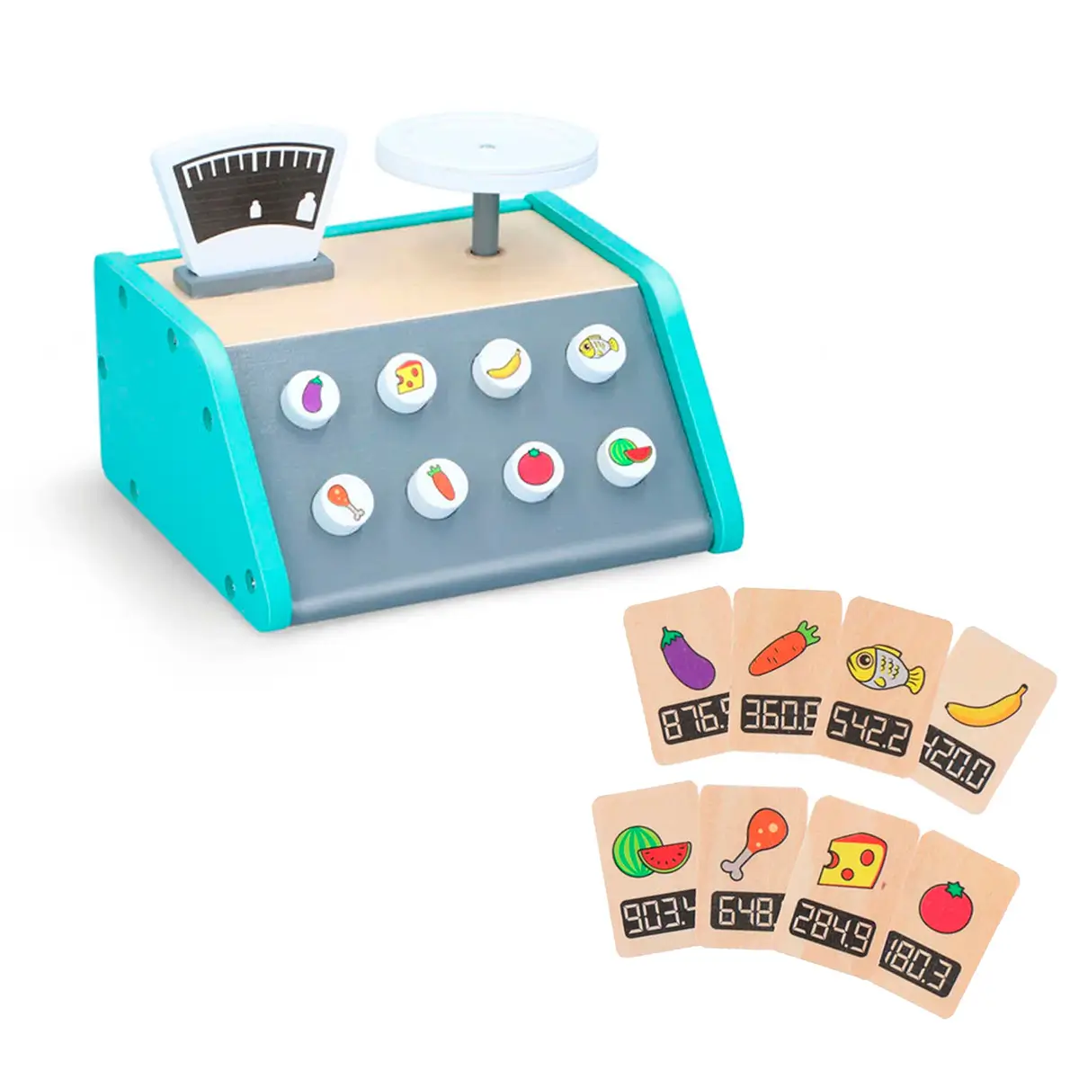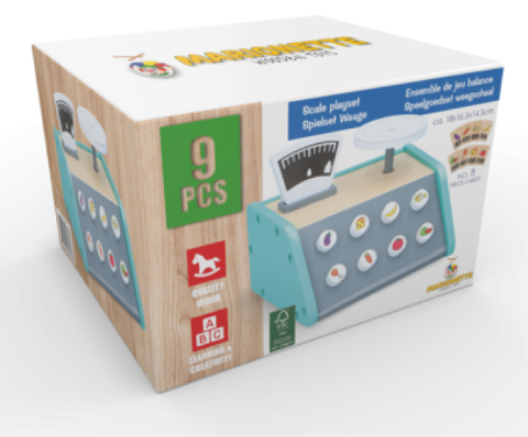 Dette sæt indeholder en robust trævægt med to balancerende skåle samt 7 vægtskiver i forskellige størrelser, som børn kan placere og flytte rundt for at finde den rette balance. Legetøjet stimulerer kreativitet og problemløsning, da børnene kan eksperimentere med forskellige kombinationer og lære om vægtfordeling. Vægten er ideel til rolleleg, pædagogisk brug og som et sjovt redskab til at introducere naturvidenskabelige begreber på en enkel og tilgængelig måde.