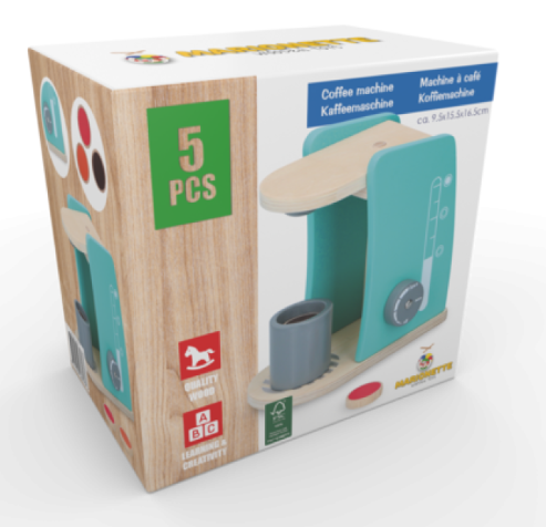Specifikationer – Marionette Kaffemaskine i træ, 5 dele