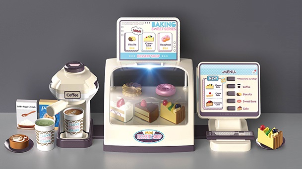 Realistisk lys og lyd: Skaber en engagerende caféstemning under legen, hvor børn kan servere kager og kaffe til familie og venner.