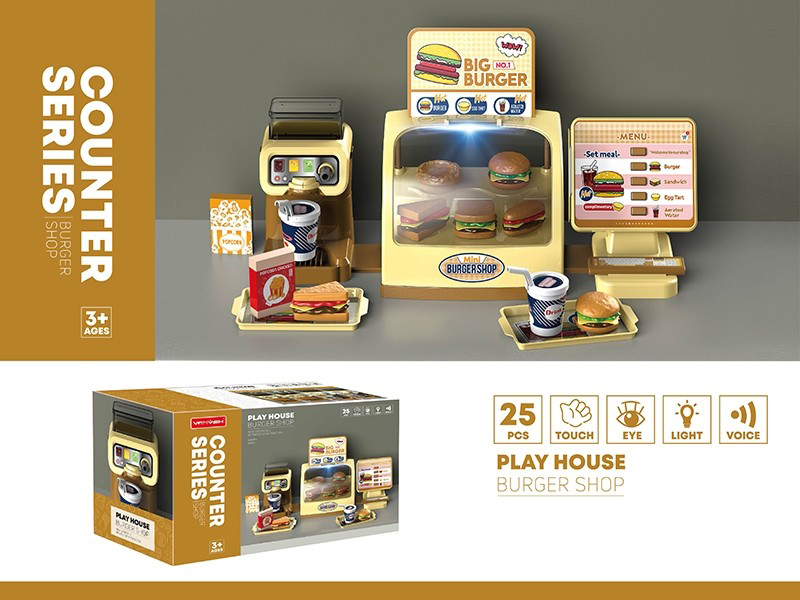 Lad børnene lege fastfood-restaurant med Play House legetøjs burgerbar, der har lys og lyd for at gøre legen endnu sjovere og mere realistisk. Børn kan tage imod bestillinger, sammensætte burgere og servere pommes frites og drikkevarer, mens de lærer om madlavning og kundeservice gennem rolleleg.