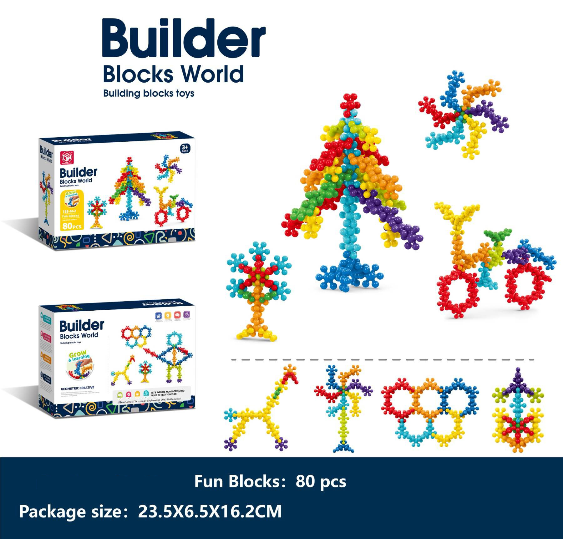 Kreativ byggeleg: Sættet indeholder 80 dele i forskellige farver, der let kan sættes sammen og skilles ad, så børn kan bygge alt fra træer og figurer til fantasifulde kreationer.