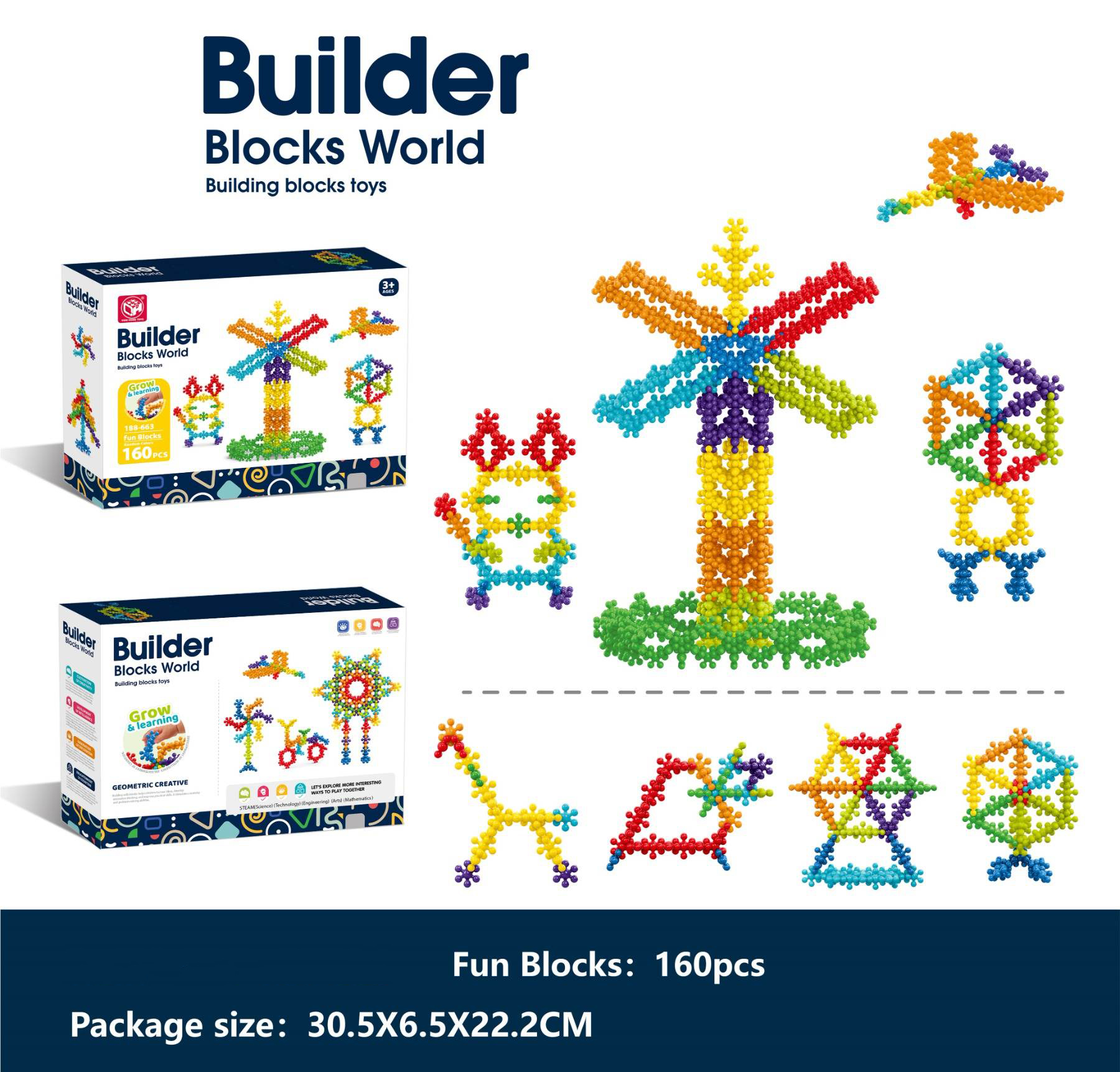 • Indeholder: 160 farverige byggeklodser