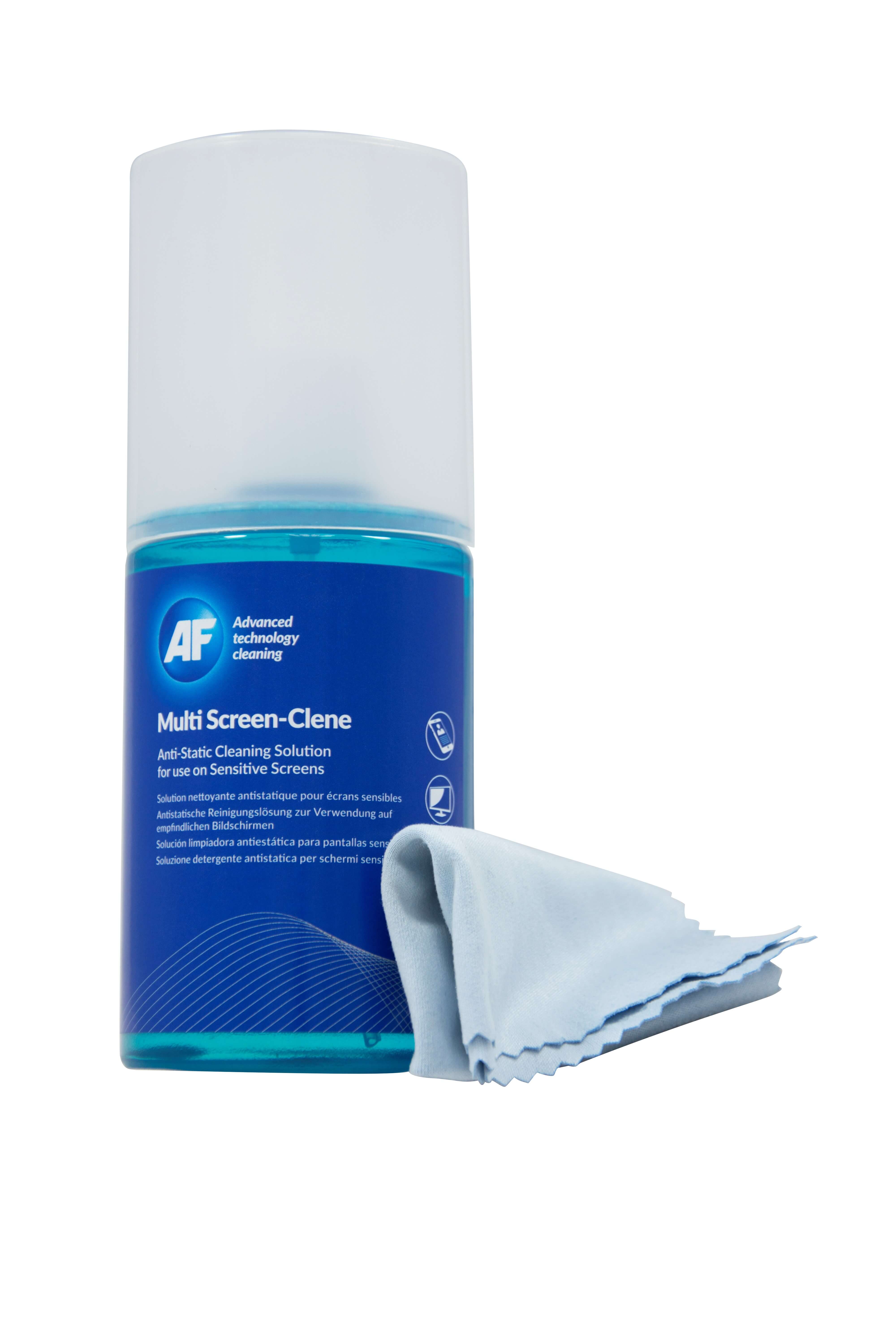 | Ekstra information | AF Multi-screen Clene. En ikke-brændbar, antistatisk rengøringsspray m. en vaskbar mikrofiberklud i låget, velegnet til smart TV samt TFT og LCD skærme. |