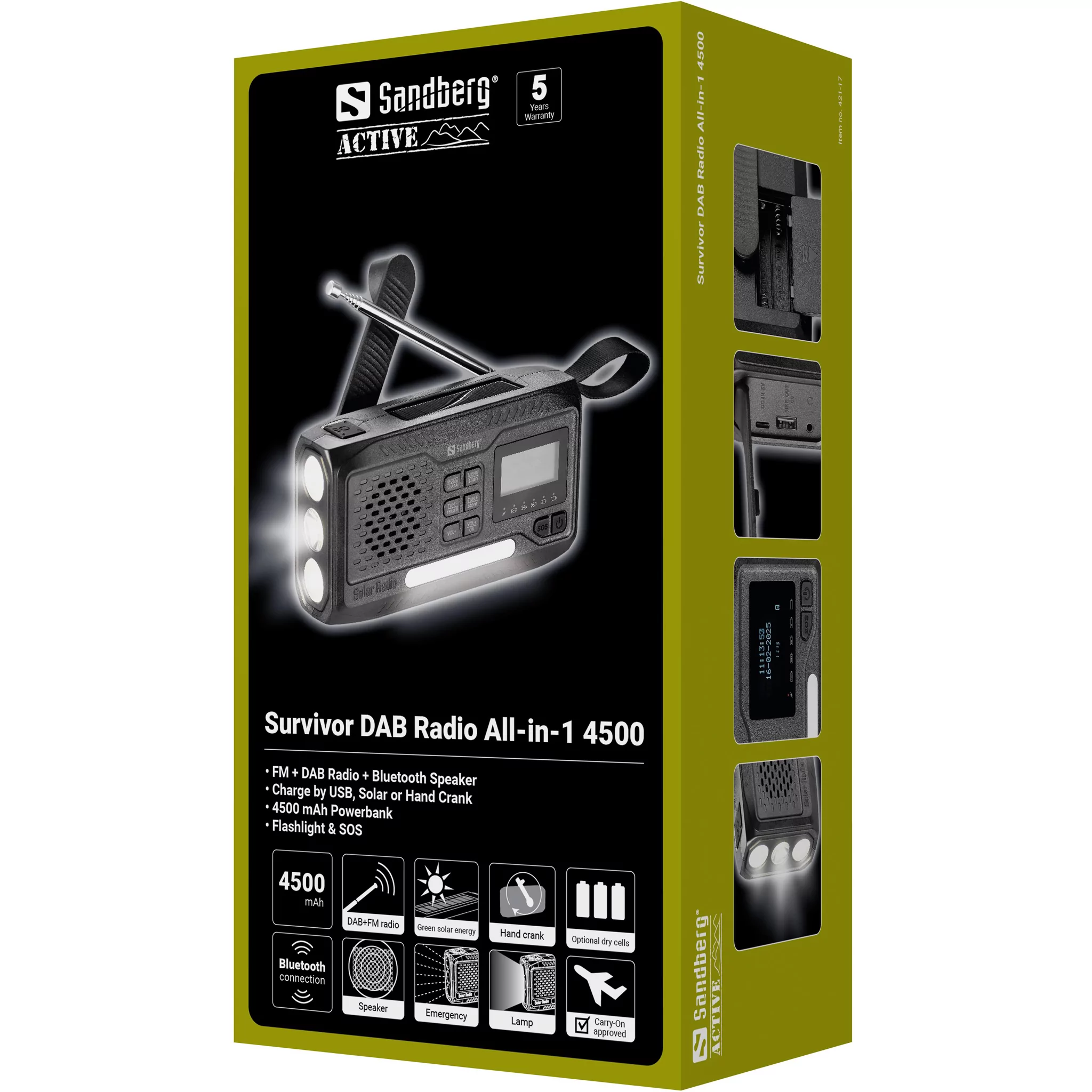 Sandberg Survivor DAB Radio All-in-1 4500 er en kompakt og robust multienhed, designet til alle situationer – fra vildmark og camping til nødsituationer. Denne alt-i-én-enhed kombinerer: