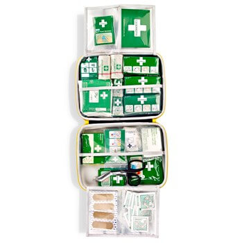 • Indhold: Plastre, forbindinger, saks, pincet, desinfektionsmidler og meget mere