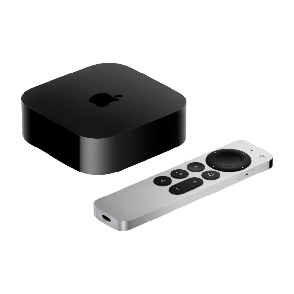 - Siri Remote (3. gen) med touch-klikpad og USB‑C-opladning