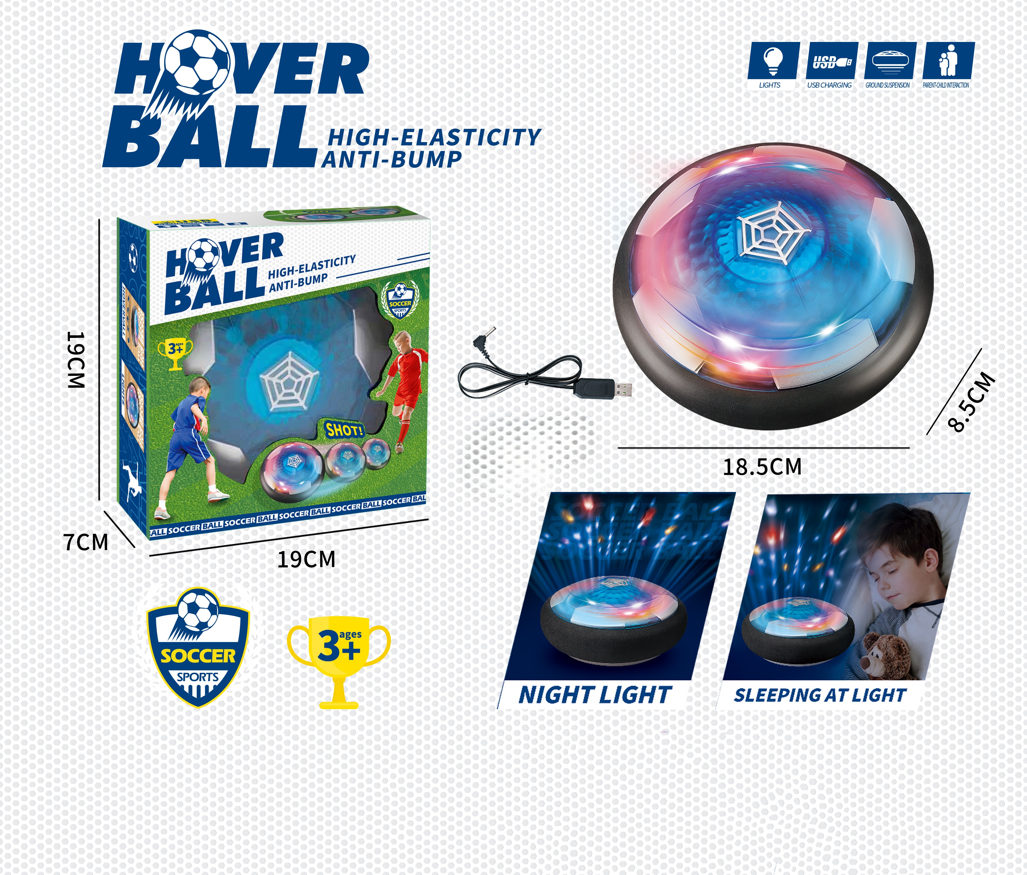Oplev sjov og aktiv leg med den genopladelige Hover Ball, der svæver let over gulvet ved hjælp af en luftstrøm! Perfekt til indendørs fodbold uden at beskadige møbler eller vægge, så børn kan lege og bevæge sig, selv når vejret ikke tillader udendørs leg.