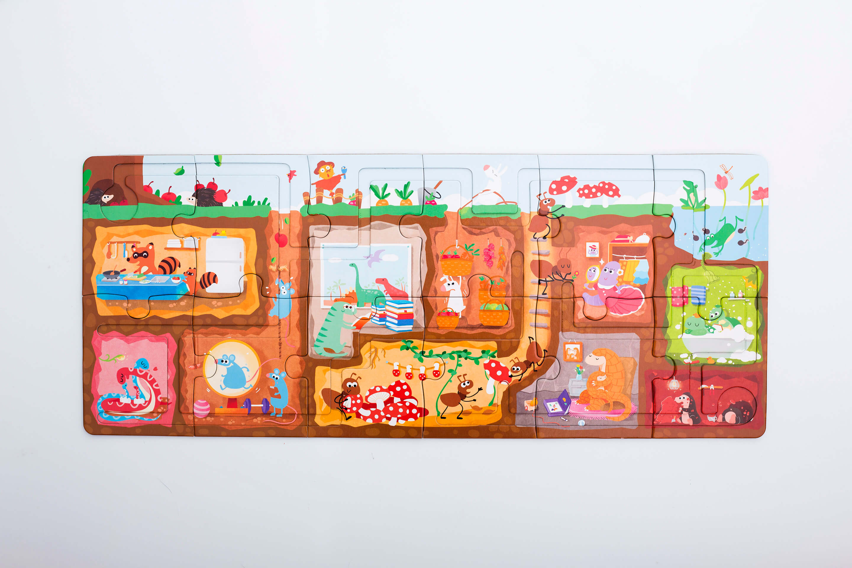 mierEdu Kreativt puslespil - Underground Houses er perfekt til stille leg, der styrker koncentrationen og giver mulighed for læring gennem leg både hjemme og i institutioner.