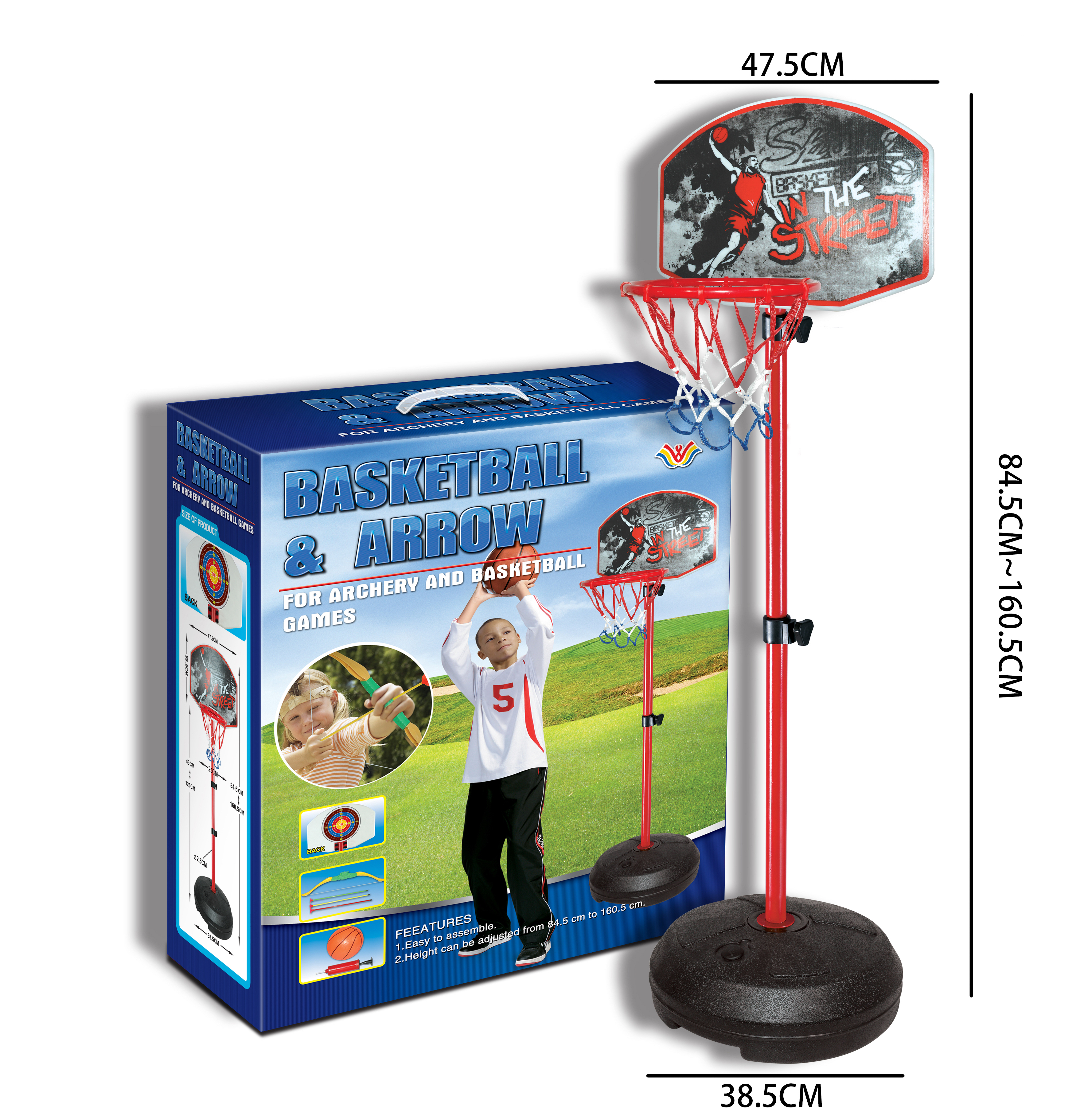 Gør leg og bevægelse sjov og alsidig med denne 2-i-1 basketball og bueskydning stander, der kombinerer to sjove aktiviteter i ét sæt. Dit barn kan øve basketballskud eller prøve kræfter med bueskydning på skydeskiven og udvikle både præcision, koordination og motorik gennem leg.