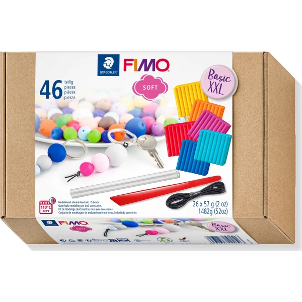 Staedtler FIMO modelleringsler Soft Basis XXL m/værktøj , 46 dele
