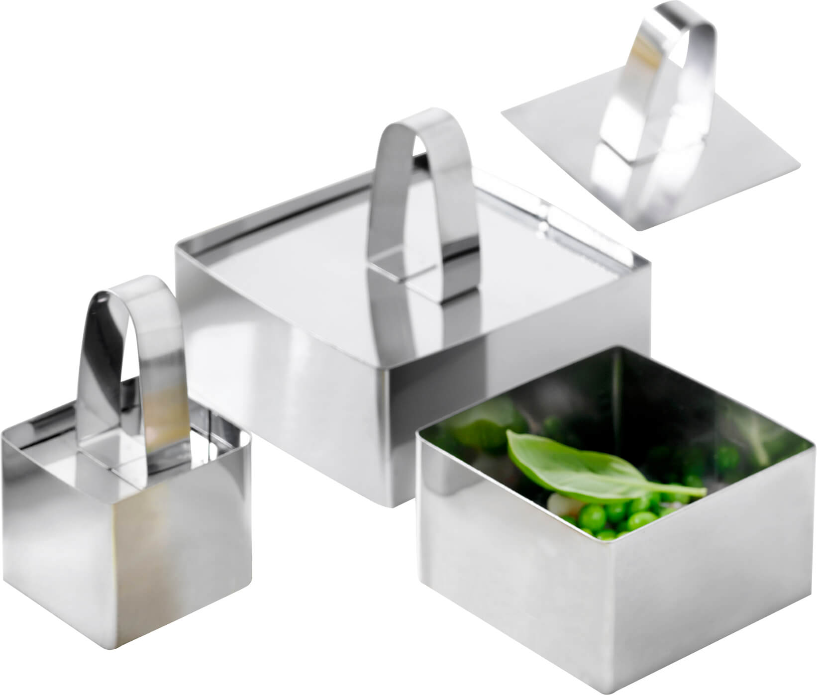 De kvadratiske udstikkerforme er designet til at være både robuste og nemme at håndtere. Det polerede stål giver et stilrent udtryk og gør rengøringen enkel. Med de forskellige størrelser i sættet kan du variere dine præsentationer og tilpasse portionerne efter behov. De praktiske løftere hjælper dig med at løfte de færdige former forsigtigt, så de bevarer deres perfekte kant.